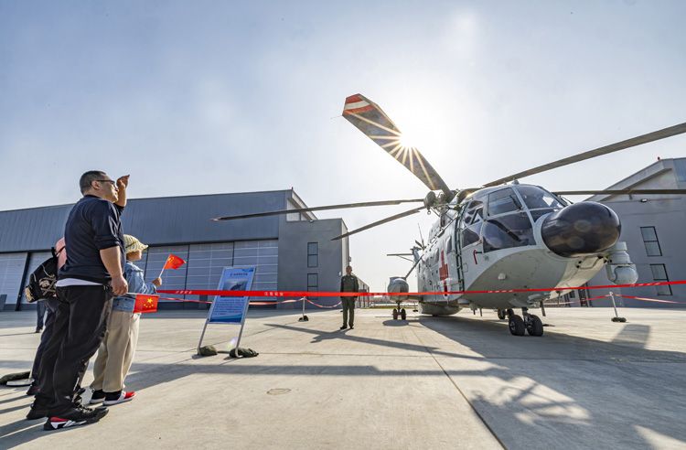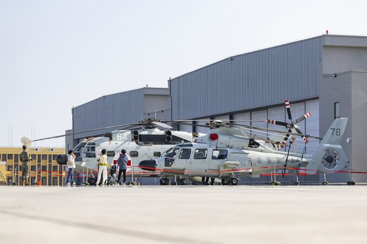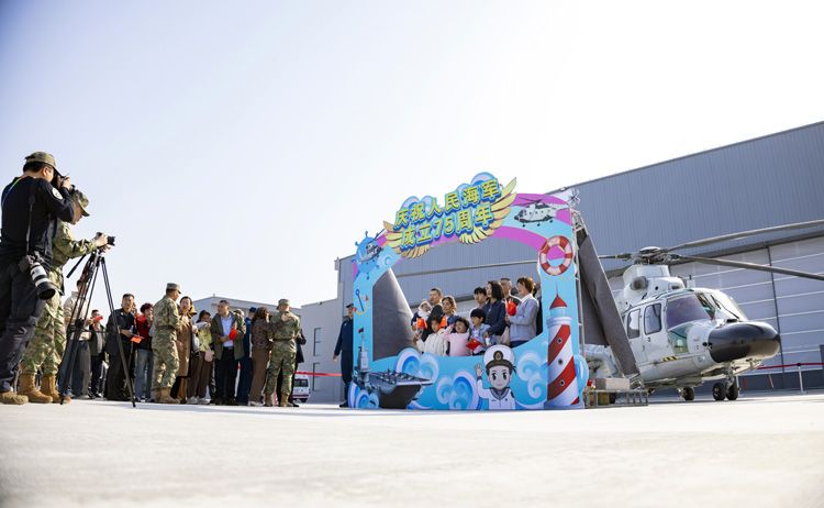 庆祝人民海军成立75周年,舰载直升机亮相海军军营开放日
