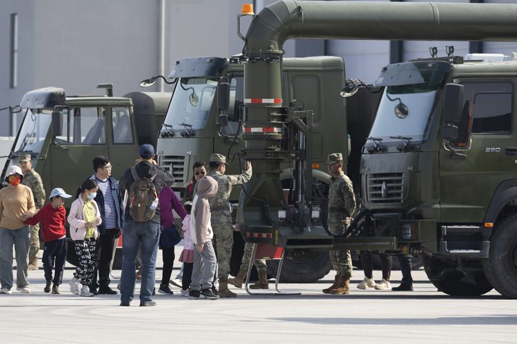 此次活动设置“团队历史介绍”、“武器装备展示”、“模拟射击体验”等6项内容,市民在参观中感受到部队发展变化和国防成就,增强了国防意识,凝聚了爱国情怀。图为市民参观舰载直升机和特种车辆。