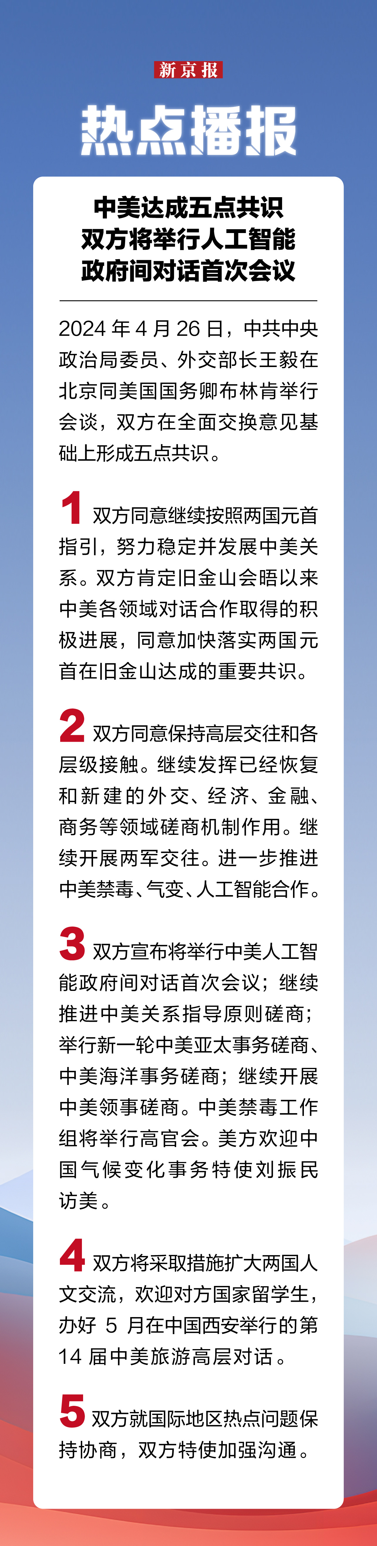 热点播报丨中美达成五点共识:双方将举行人工智能政府间对话首次会议