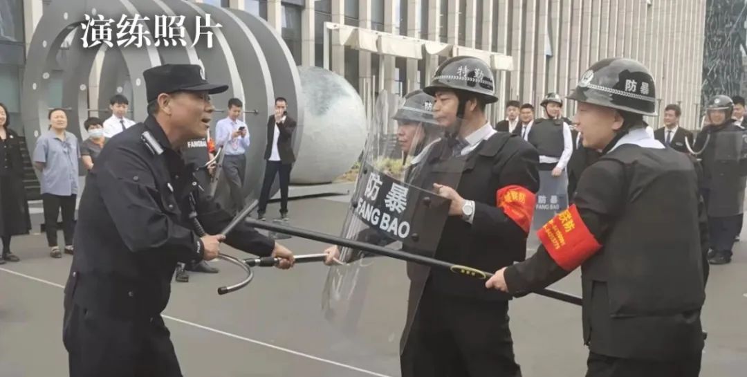 警方联动安保部门进行实战培训演练。图源:北京市公安局朝阳分局