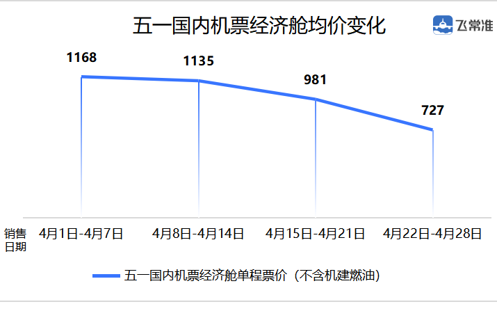 临近五一,国内经济舱机票均价较4月首周下降38%