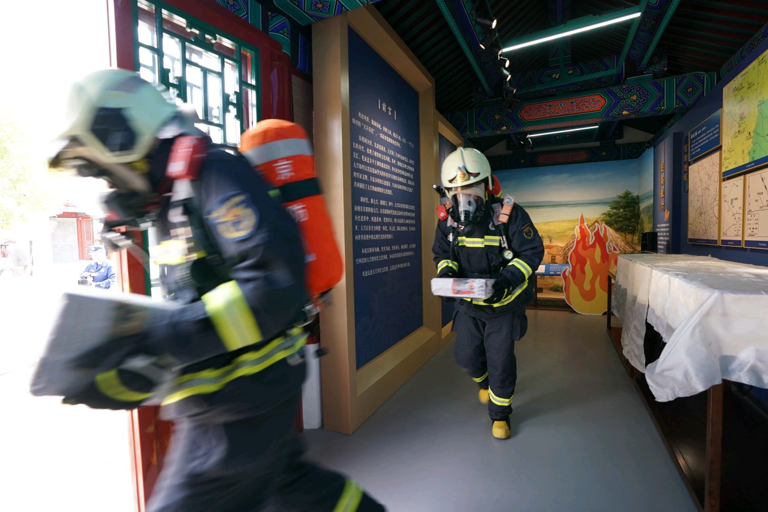 消防救援人员正在团河行宫遗址公园进行演练。图源:大兴区消防救援支队