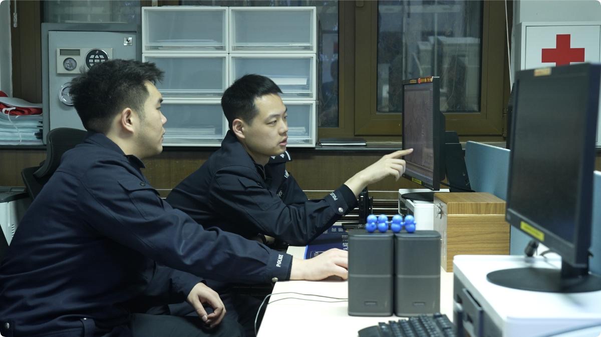 崔东博(右) 在和同事研判案情。 图源:北京市公安局