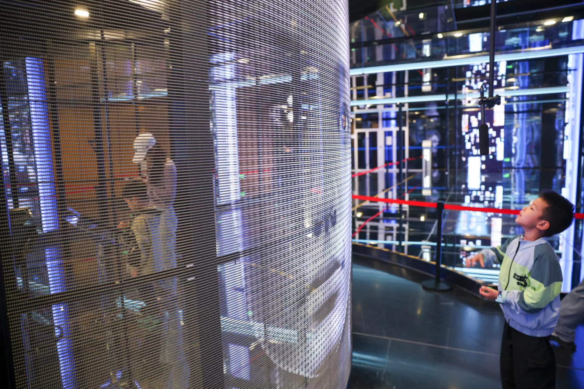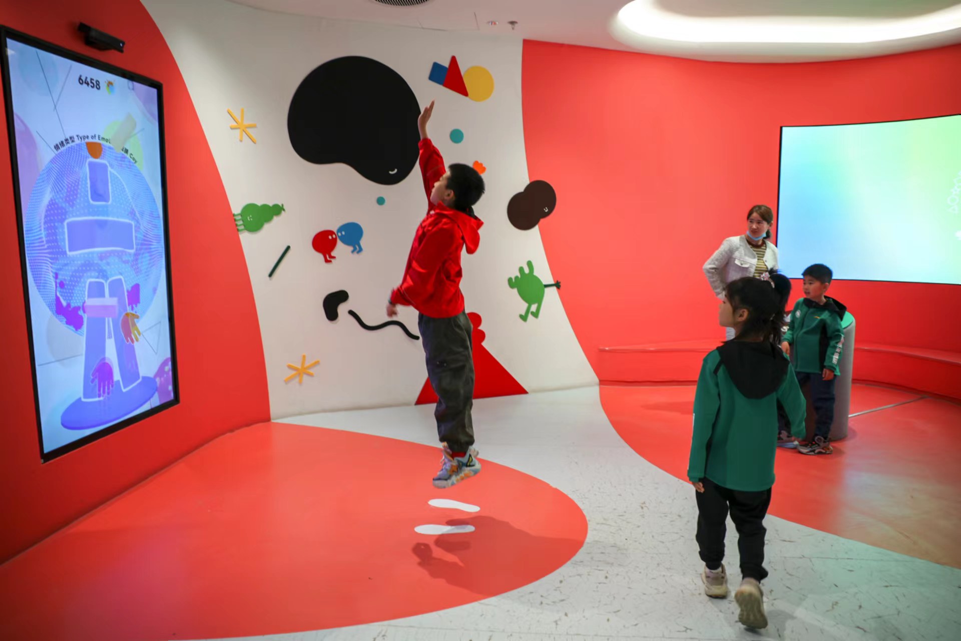 元宇宙体验馆,小朋友们被互动体验设施所吸引。