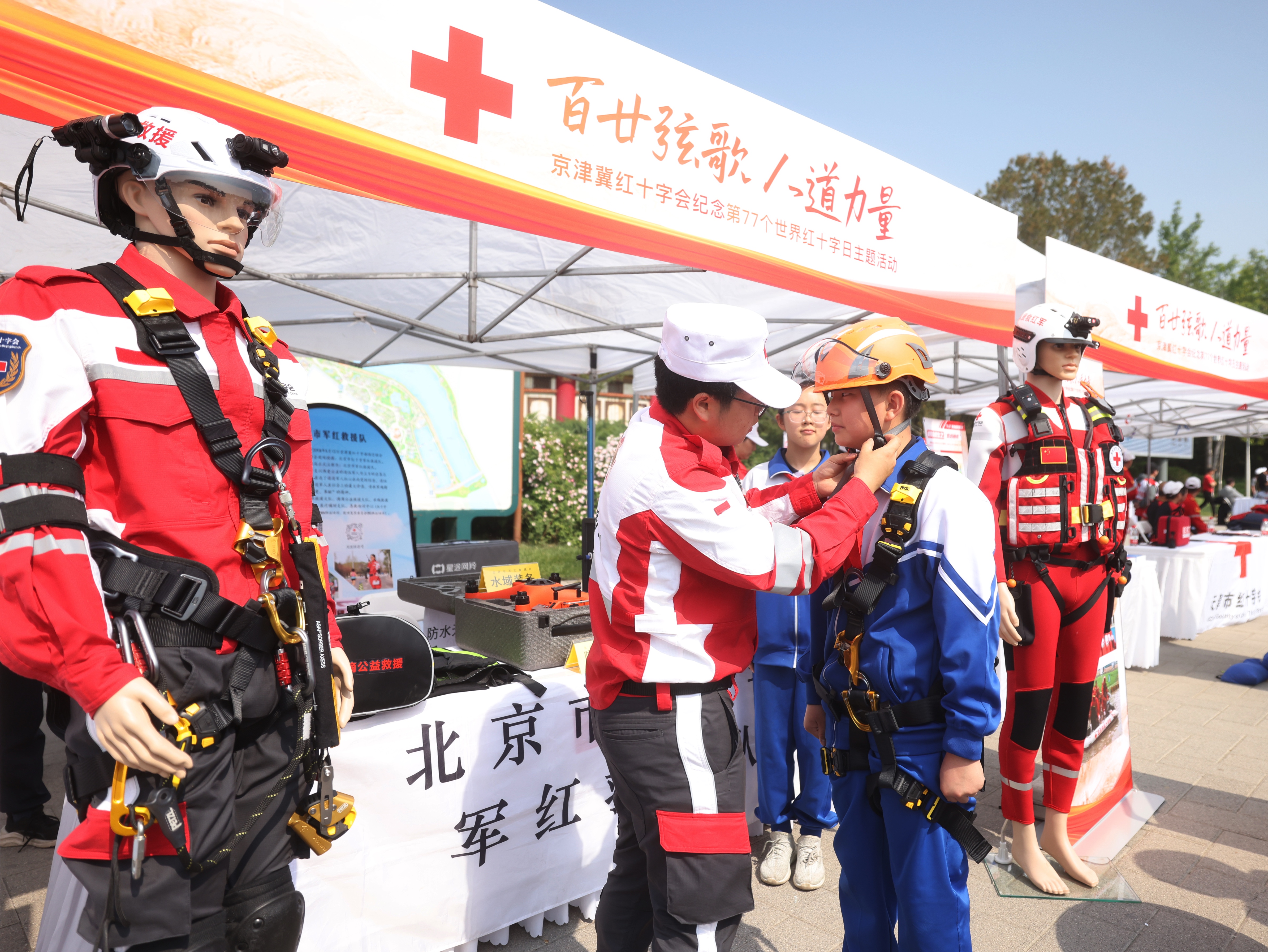 新京报讯(记者叶红梅)今天(5月7日),“百廿弦歌 人道力量”——京津冀红十字会纪念第77个世界红十字日主题活动暨“红十字博爱周”启动仪式在北京园博园举行。现场组织了人道力量展示和互动体验活动,吸引了不少游园群众了解、参与。