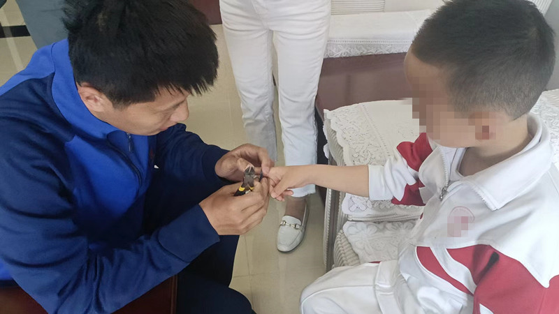 消防救援人员了解到,该学生在把玩尺子时,不慎将右手食指卡在尺子上的小圆孔中,导致无法拔出。