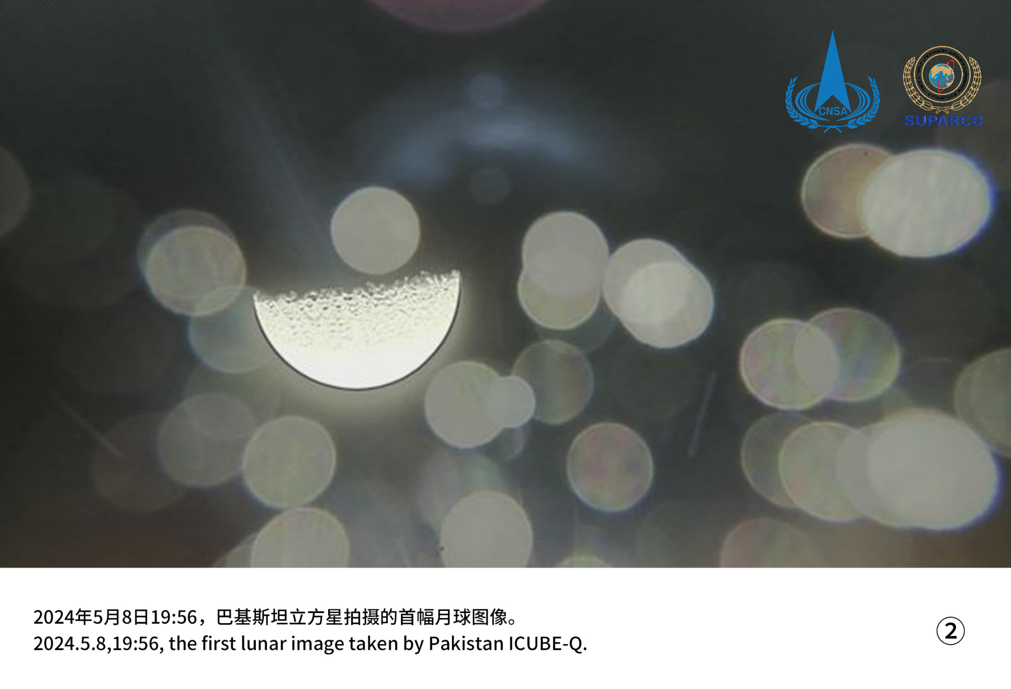 5月8日16时14分,嫦娥六号任务搭载的国际载荷之一巴基斯坦立方星与轨道器在周期12小时环月大椭圆轨道的远月点附近分离,随后成功拍摄第一幅影像。巴基斯坦立方星项目实现“成功分离,获得遥测”的既定目标,取得圆满成功。