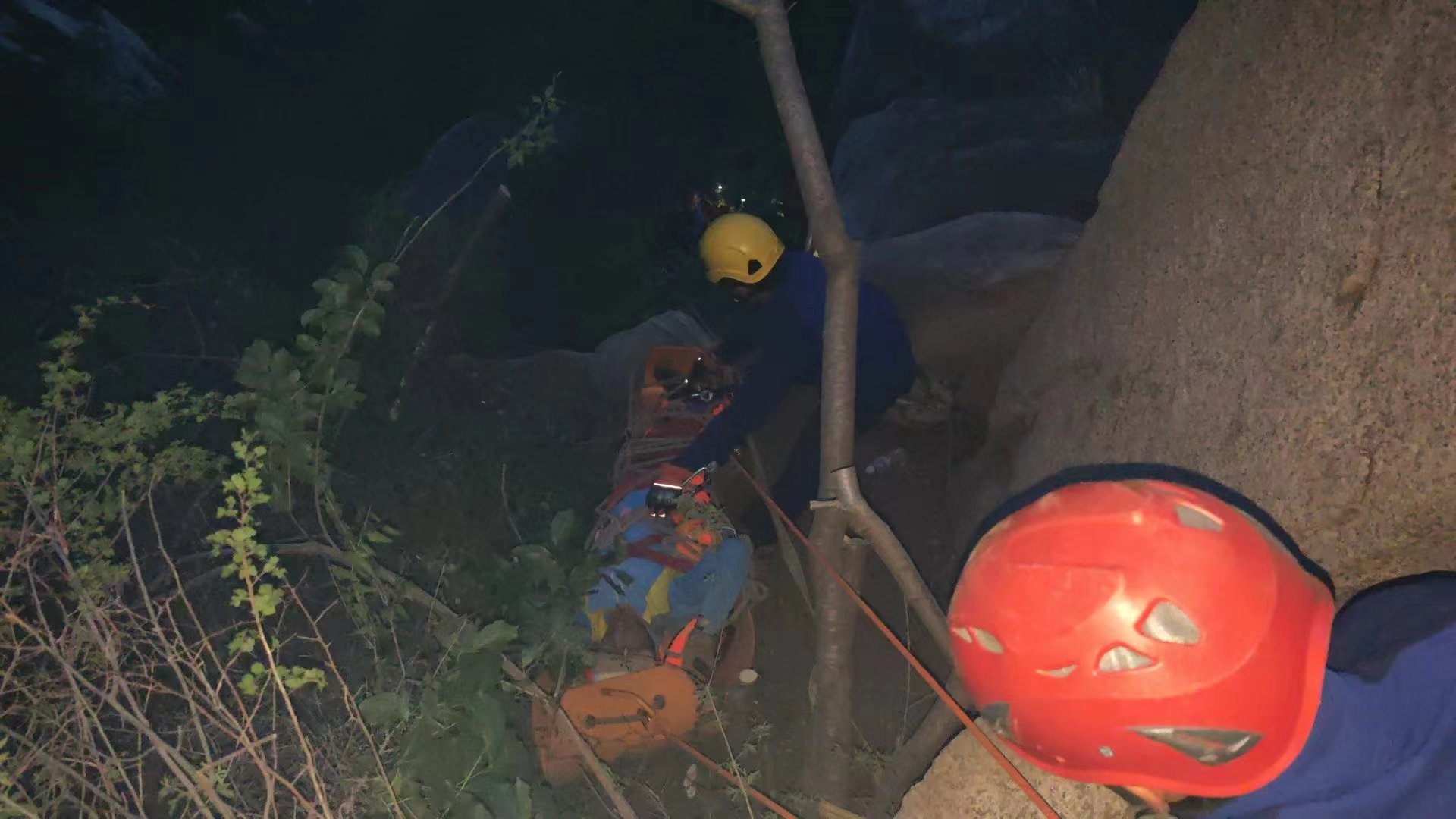 19时32分,增援的国际会都消防站到场后,先将这对母子安全转移下山,其余人员共同对被砸伤者进行加固防止其受到二次伤害。次日0时15分,救援人员安全将被困人员转移护送到山下移交给120送往医院。
