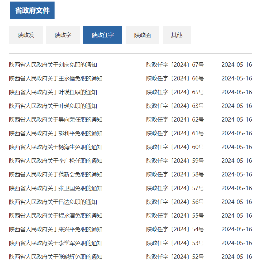 新京报讯 据陕西省人民政府网站消息,5月16日,陕西省发布一批人事任免通知,涉及多所高校、机构副职人员,具体如下: