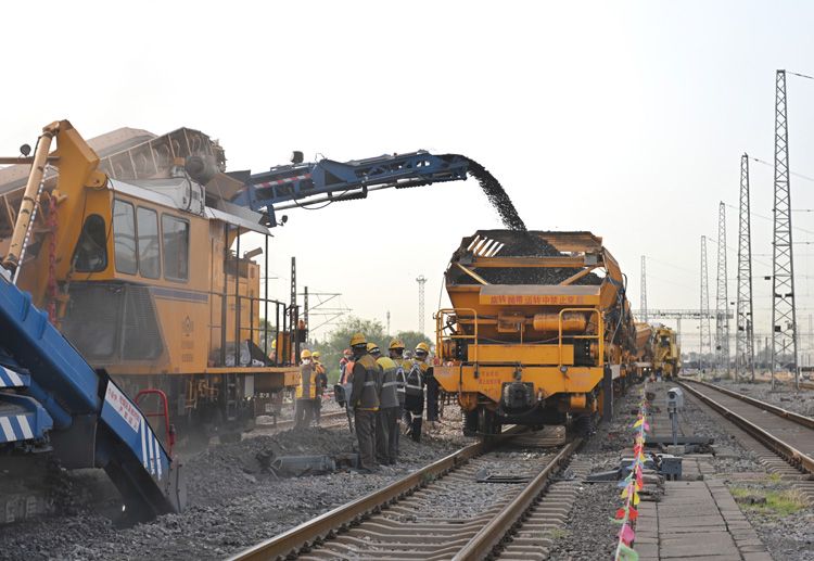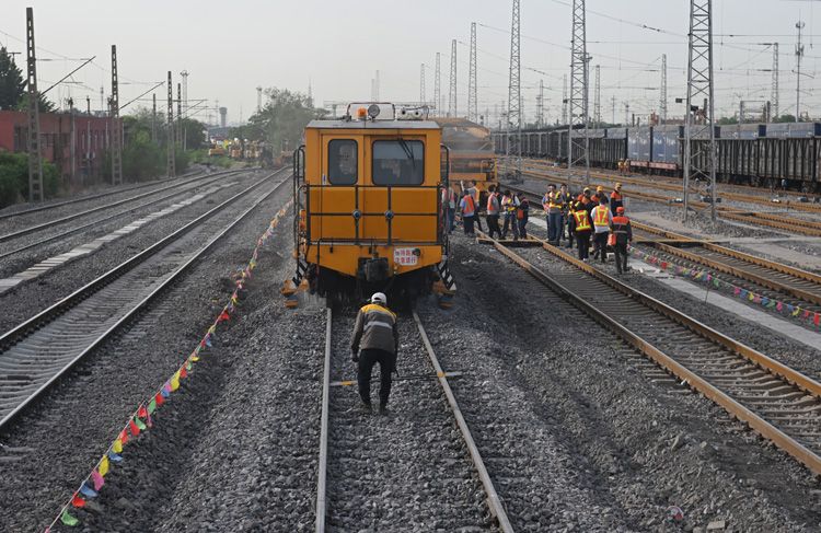 丰台西站,大型机械正在对轨道进行整形作业。经过升级改造和优化,二季度丰台西站列车解体编组或中转平均用时有望进一步压缩,效率将提高 6.5%。