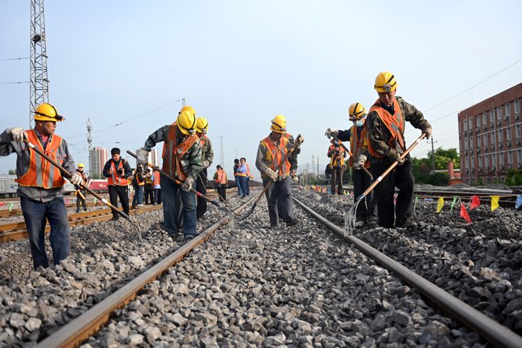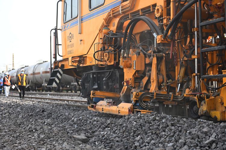 5月16日,丰台西站,大型机械将道床进行捣固。随着暑期货运量增加,为提高运输效率、降低物流成本,利用新型高科技大型机械进行基础设施升级改造刻不容缓。此次改造包括清筛、捣固、更换枕木等作业,大型机械展现出超高效率,能轻松完成任务。