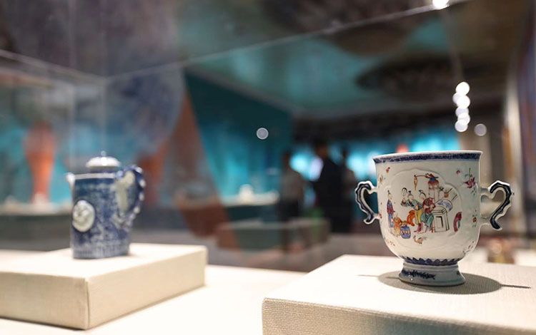 本届茶香文化节期间,郡王府打造“茶文化会客厅”,在展览展示区,游客们可以在银安殿中一览《千里同风》中国外销瓷精品展。