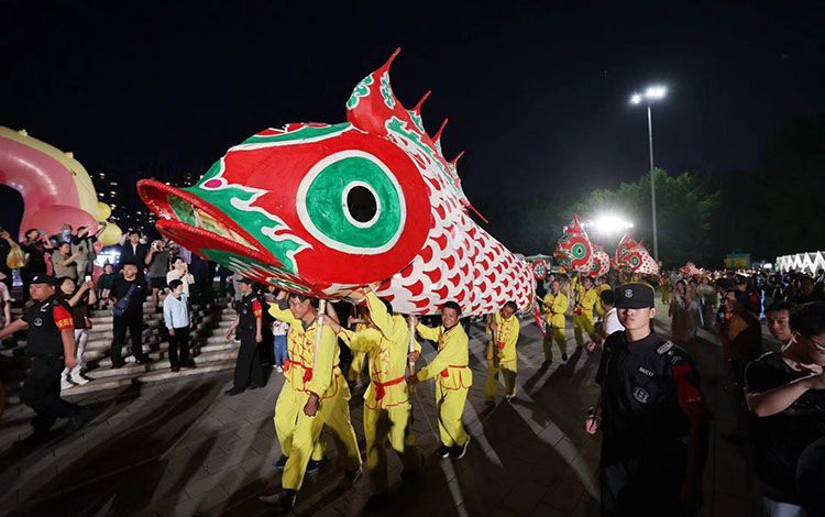 朝阳公园,有着600年历史的汪满田村非遗鱼灯“寻香而来”巡游,8米的超大鱼灯在5月16日-5月18日与市民见面。