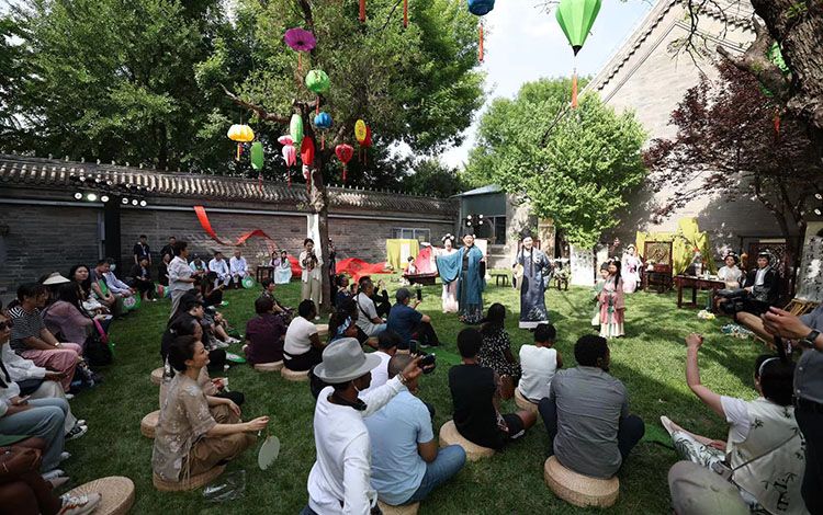 观众正在观看《自在花间游》沉浸式剧目舞台。