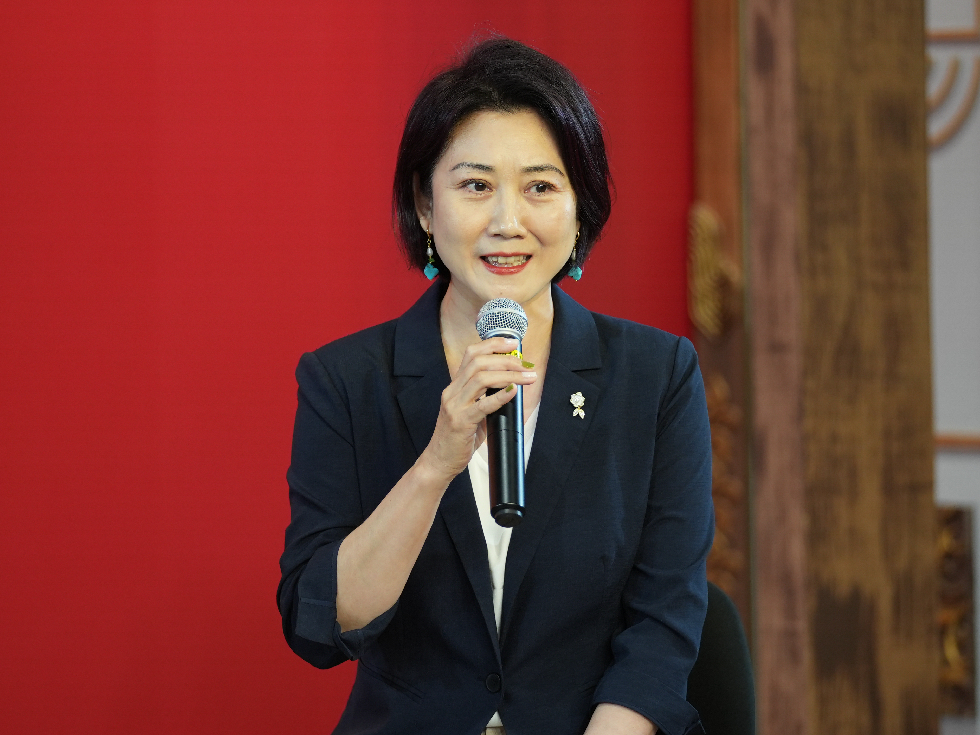 随后,“寻梦·承泽”项目负责人、北京京剧院领衔主演杜镇杰、张慧芳分别从各自角度讲述了十年来项目培育发展及个人艺术成长的点点滴滴。杜镇杰首先讲述了“寻梦·承泽”项目的由来和对于择定2024年即将演出剧目的考量。杜镇杰表示,十分感谢剧院长期以来提供的广阔平台和大力支持,在“寻梦·承泽”项目十年间的持续耕耘下,二人不仅在个人艺术成长上广承师泽、笃定前行,与琴师艾兵、鼓师刘洋长期合作、配合默契,在剧目挖掘、人才培养上也成效显著,更收获了大批戏迷粉丝的坚定支持。“寻梦·承泽”的成功,离不开组织培养、观众肯定和社会认可。2024年“寻梦·承泽”的首场演出,也将再次上演十年前作为项目启动首演的传统经典剧目《珠帘寨》,以此回望初心,赓续前行。