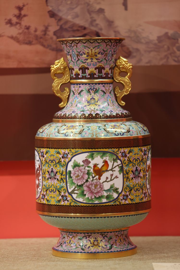 景泰蓝双耳富贵樽。