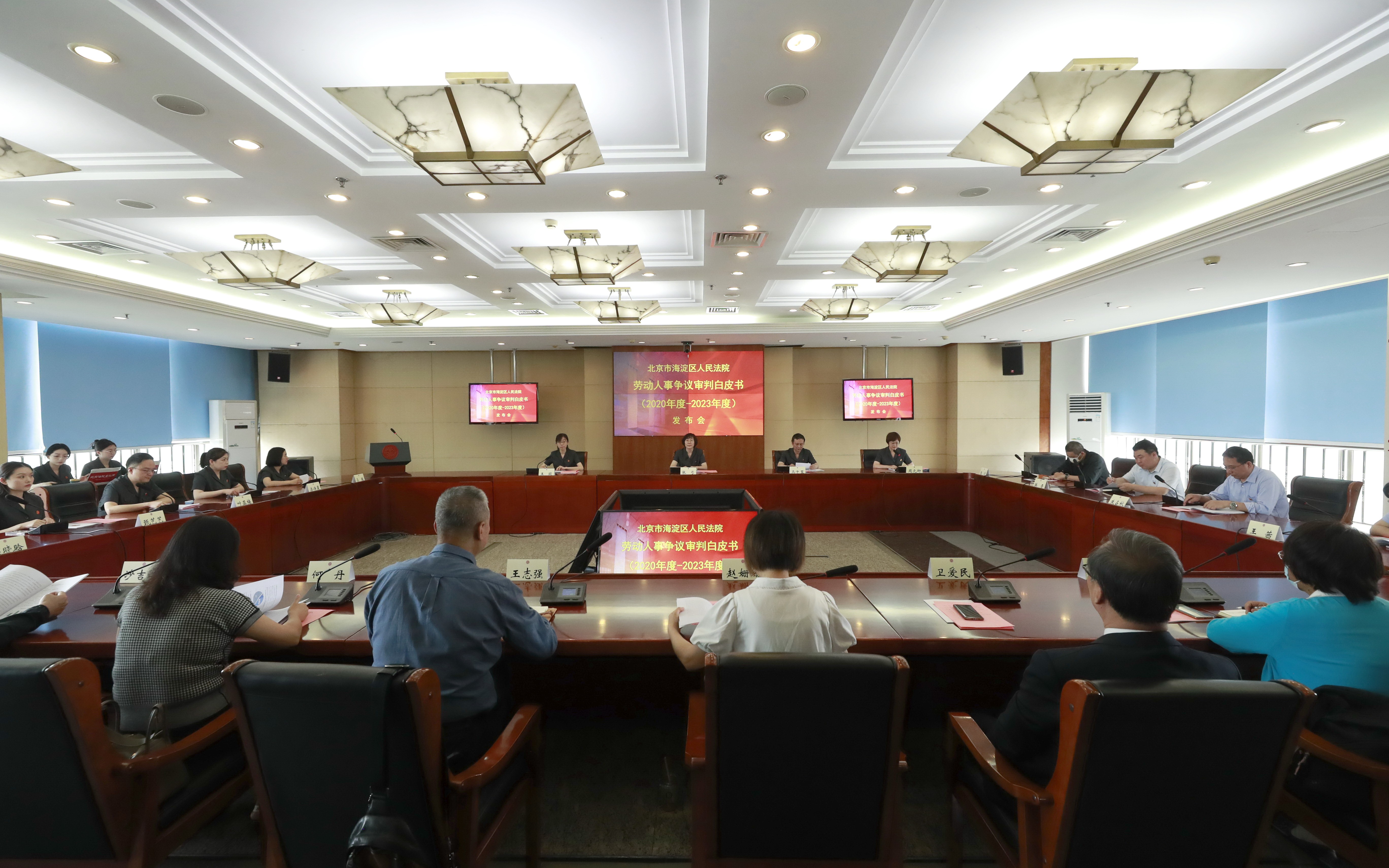 《北京市海淀区人民法院劳动人事争议审判白皮书(2020年度-2023年度)》发布现场。 图源:海淀法院