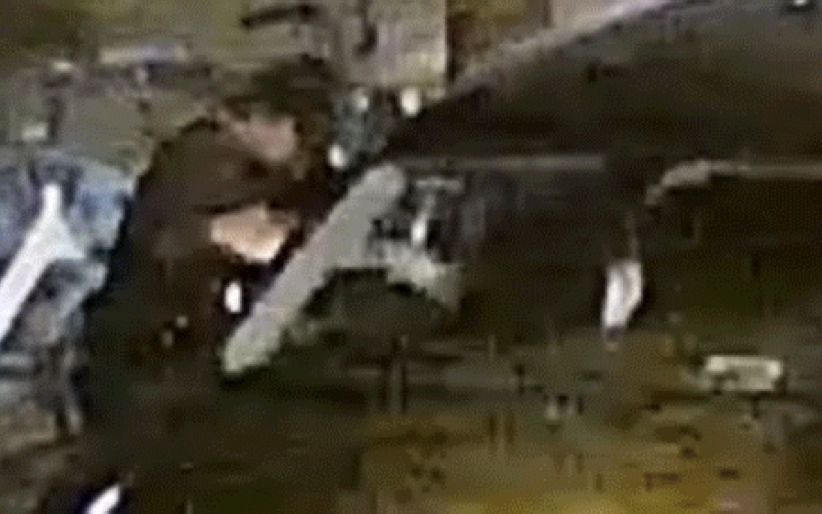 监控视频显示,男子李某在路边砸车窗盗窃。图源:北京市公安局朝阳分局