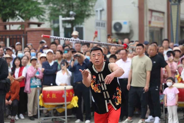 5月22日,朝阳区崔各庄地区第十二届文化艺术节暨第三十三届奶子房庙会开幕,庙会汇聚多种形式的活动,包括文会、武会、非遗技艺展示和创意市集,活动持续4天。图为小车会表演。