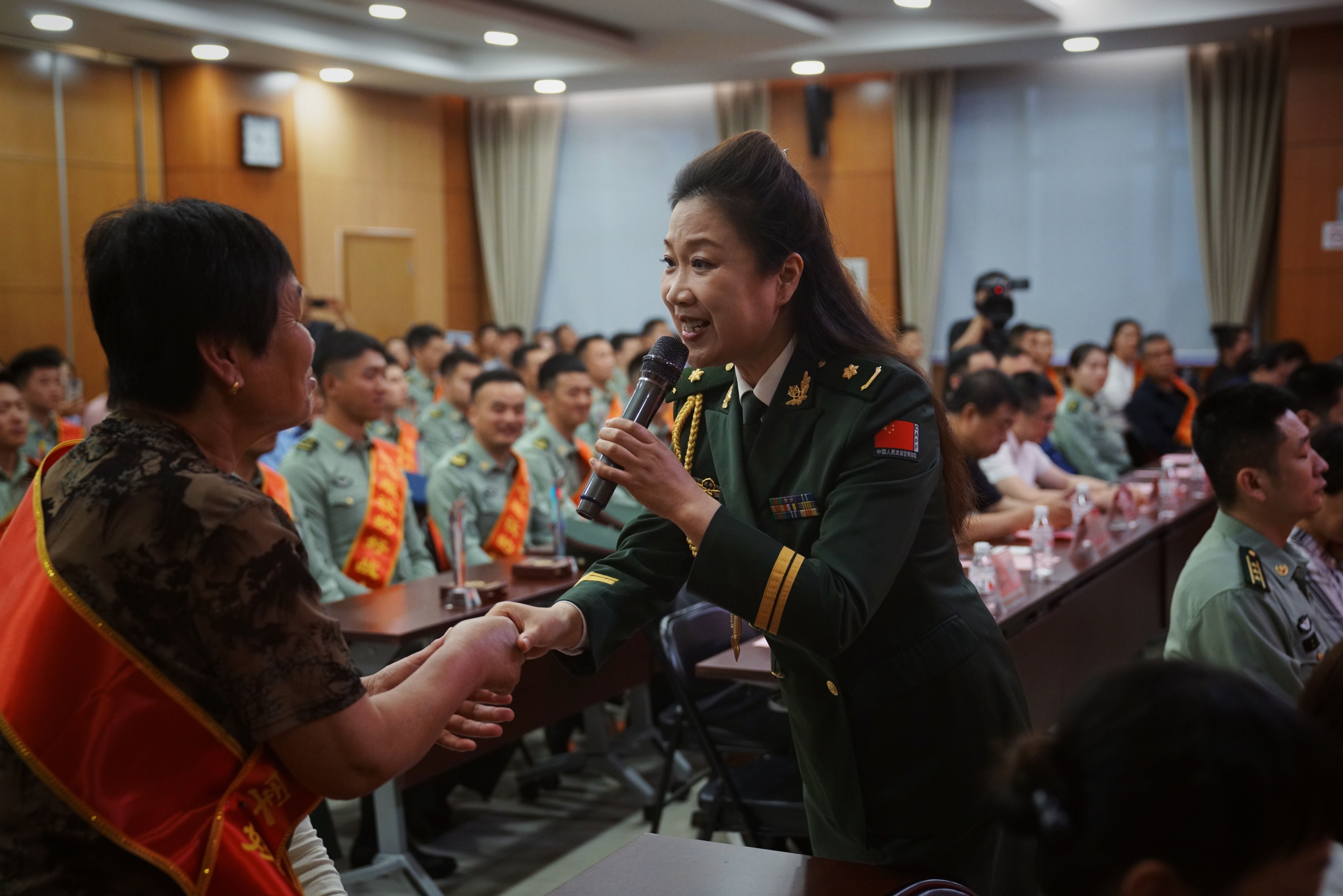 5月24日上午,西城区什刹海街道举办第29届双拥“五好”评选表彰活动,歌唱家现场演唱《妻子》送给体贴子弟兵的好军嫂。新京报记者 薛珺 摄
