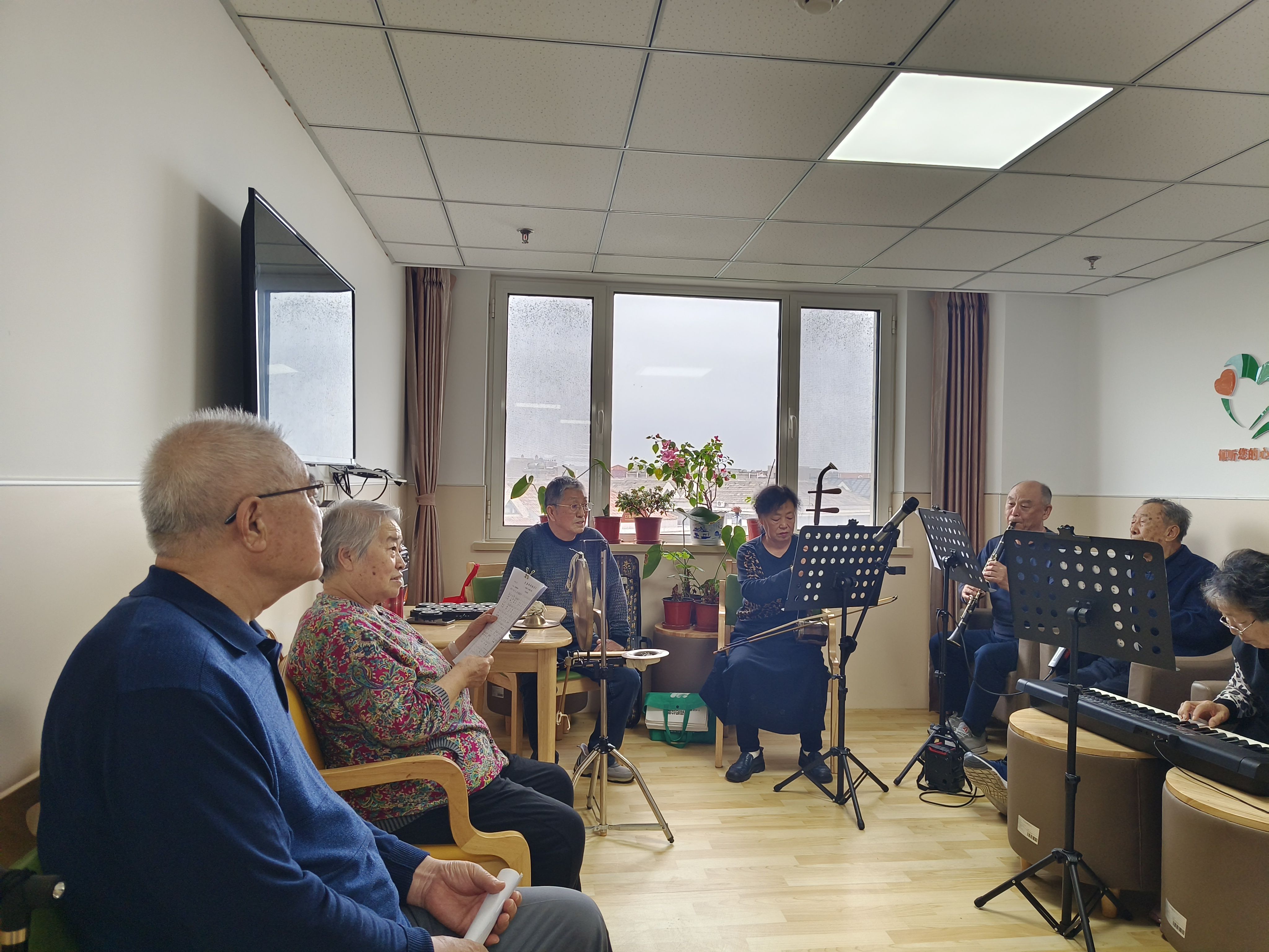 秦皇岛一家养老机构内,老年人正在演奏乐曲。新京报记者 叶红梅 摄