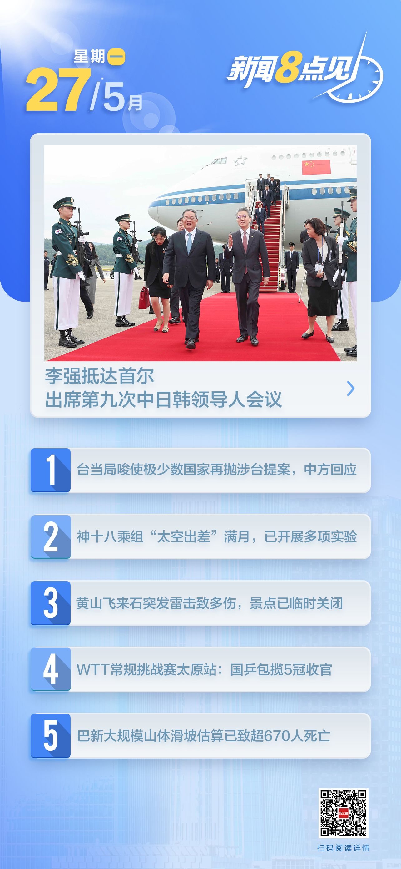 新闻8点见丨神十八乘组在轨满月;黄山飞来石突发雷击致多人受伤