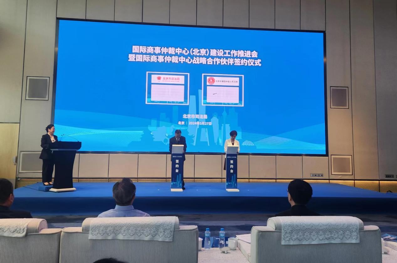 5月27日下午,北京市司法局举办国际商事仲裁中心(北京)建设工作推进会暨国际商事仲裁中心战略合作伙伴签约仪式。会上,北京市司法局与北京市第四中级人民法院、北京市贸促会、三家在京仲裁机构、四所知名高校分别签署战略合作协议。