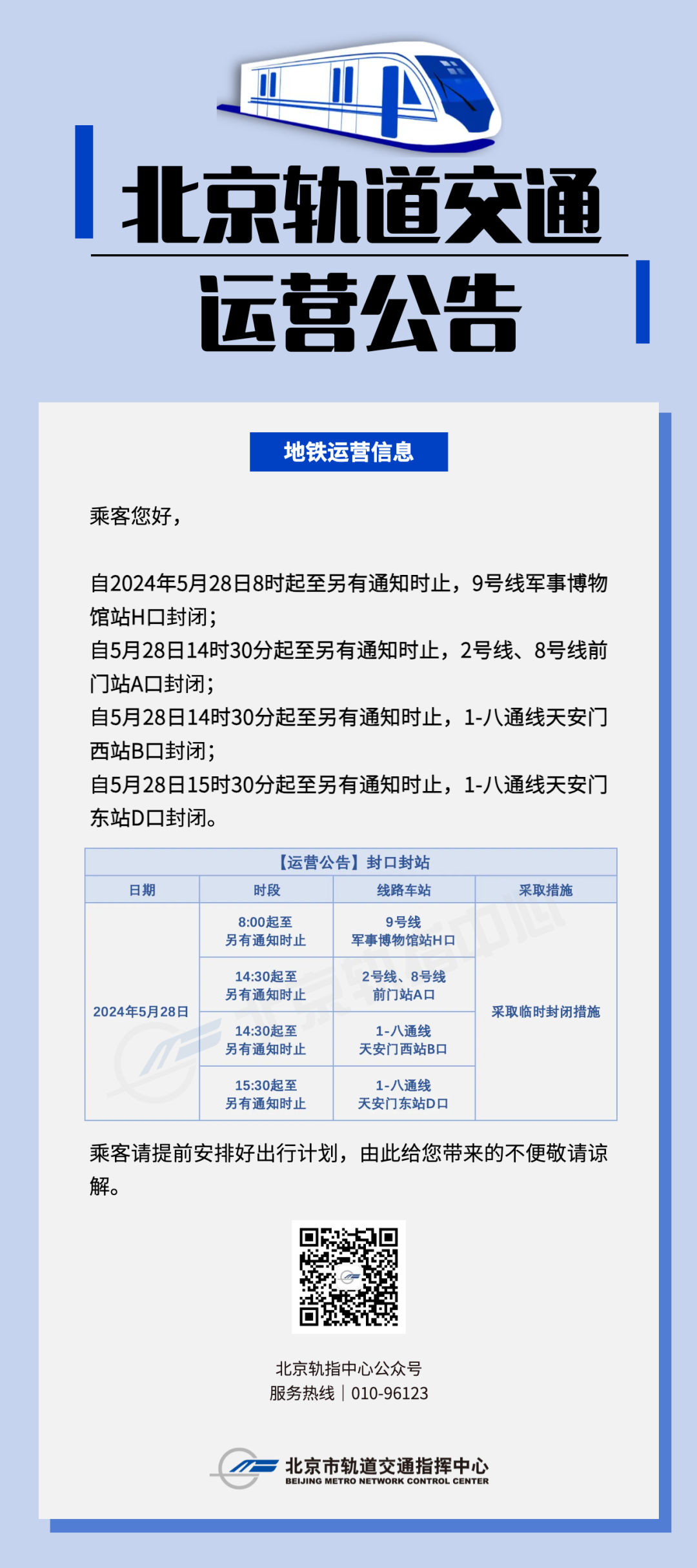 新京报讯 据北京轨指中心官微消息,5月28日,北京地铁部分车站出入口临时封闭。