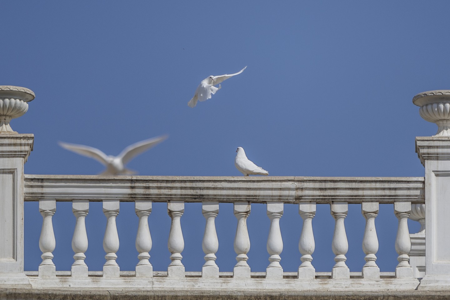 3月13日,朝阳公园,天朗气清,鸽子在蓝天下展翅飞翔。 新京报记者 王子诚 摄