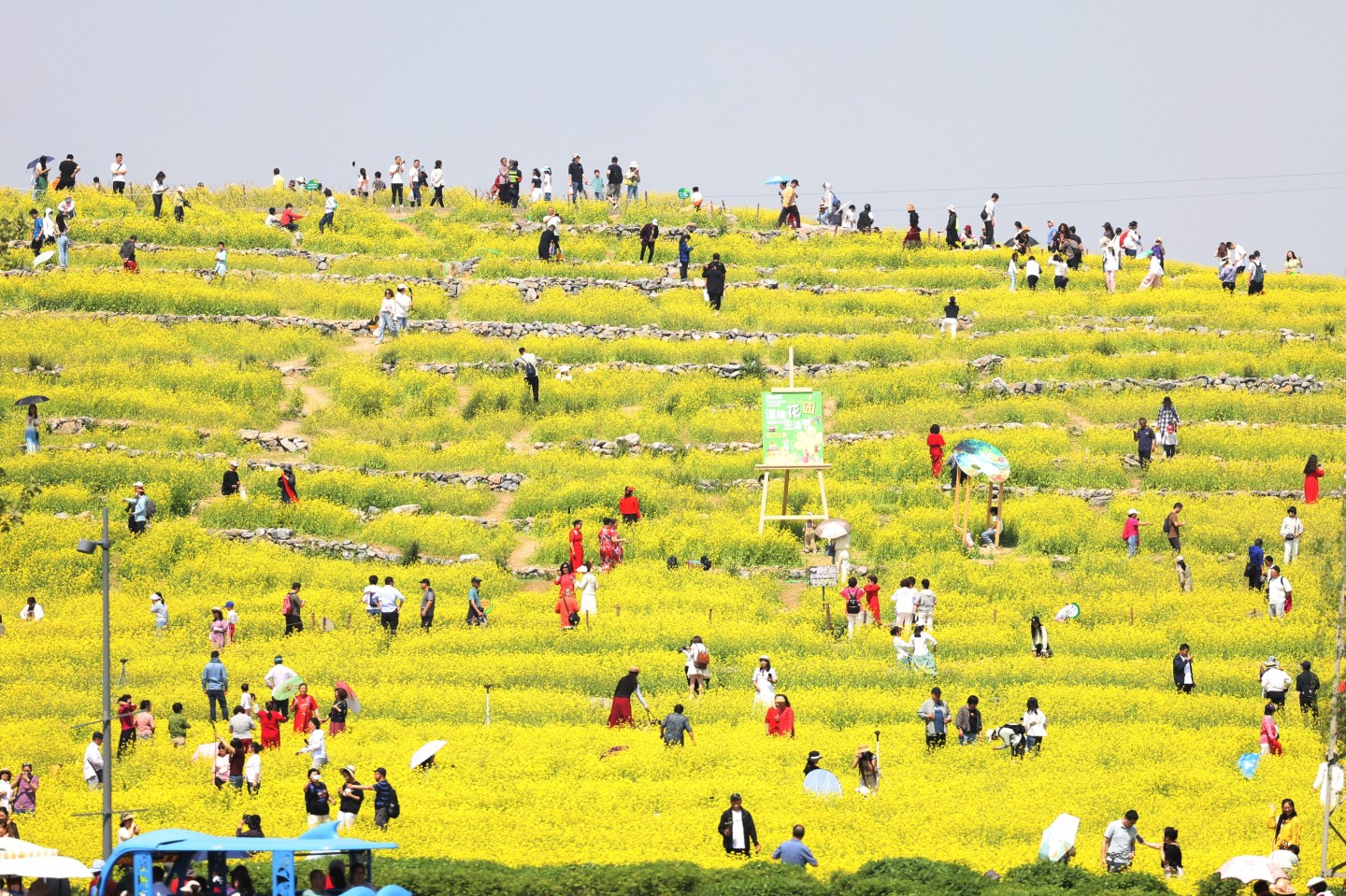 5月3日,五一假期第三天,温榆河公园“芸上梯田”景区的油菜花正在盛开,色彩艳丽,吸引了大批游客前来观赏。 新京报记者 王贵彬 摄