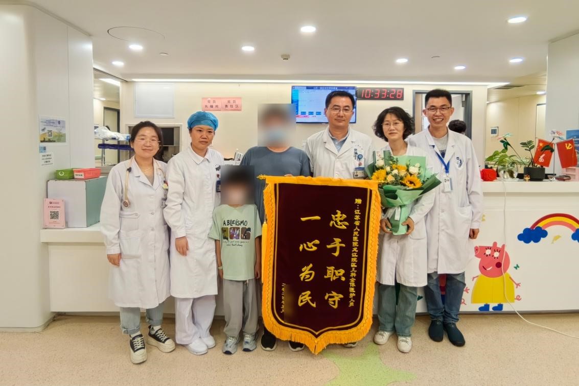 安安出院前和医护人员合影。图源:江苏省人民医院