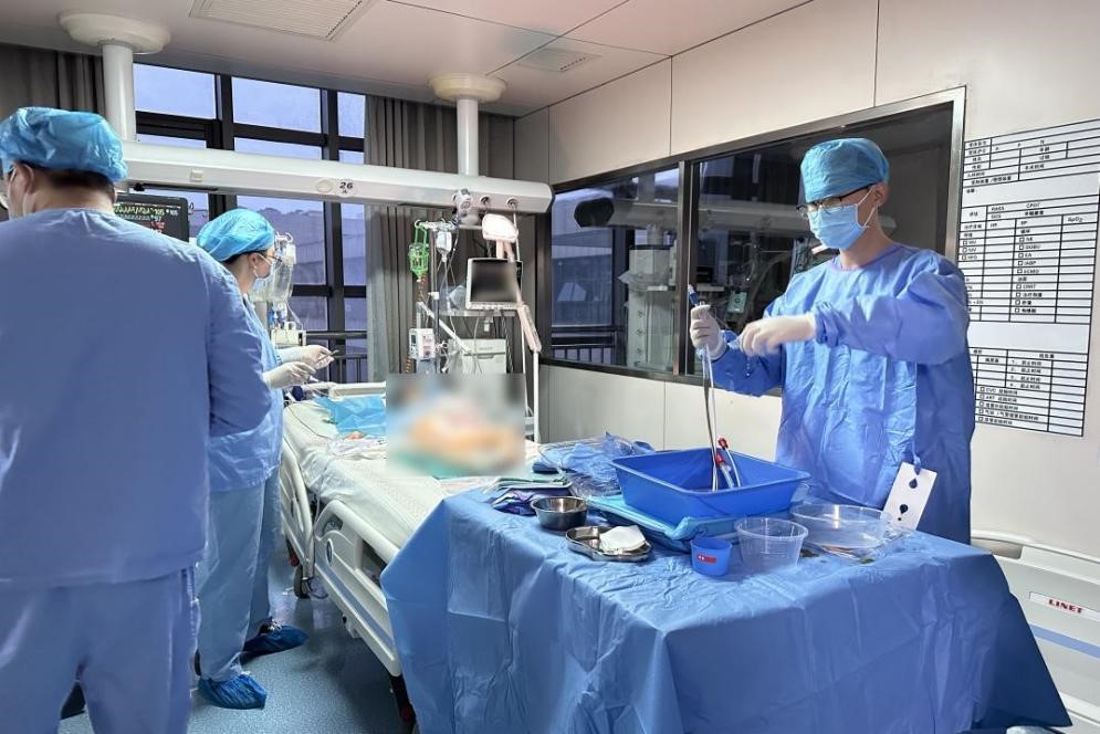 医生开展ECMO置管手术。图源:江苏省人民医院