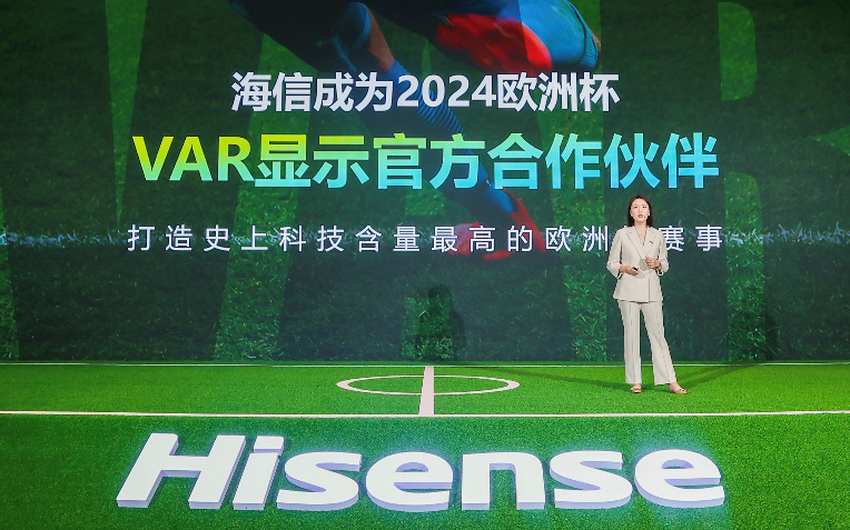 海信集团品牌管理部副总经理汤茜宣布海信成为2024欧洲杯VAR显示官方合作伙伴。 主办方供图