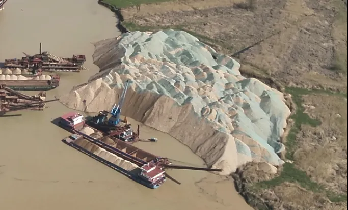 通报指出,澧水河口湿地保护区位于常德市澧县、津市两个区域,保护区面积11.9万亩。自然保护区条例规定,禁止在自然保护区内采石、挖沙。督察发现,2019年7月常德澧县水利部门违规审批,允许澧县经济建设投资有限公司、澧县东跃商贸实业有限公司在澧水河口湿地保护区的孟姜垸洲滩内进行采砂作业,截至2022年6月,非法采砂1779万吨,孟姜垸洲滩被挖空1835亩。为使违法采砂合法化,2022年12月,津市市政府拟将孟姜垸洲滩调出澧水河口湿地保护区,未得到上级部门批准。2023年9月,省水利厅印发《湖南省湘资沅澧干流及洞庭湖河道采砂规划(2023—2027年)》,明确要求孟姜垸采区“在相关自然保护地范围调整方案批复前,不得采砂”,但2023年10月澧县水利部门再次违规审批,同意澧县九澧砂石有限责任公司、澧县湖洲实业有限公司等4家采砂公司继续采砂作业,截至督察进驻时,非法采砂124万吨,孟姜垸洲滩再次被挖空250亩,累计挖空面积达2085亩。现场督察发现,孟姜垸洲滩内堆存约17.6万吨砂石,部分船只在澧水干流河道分选砂石,泥浆水直排,严重破坏澧水河口湿地保护区的生态环境。