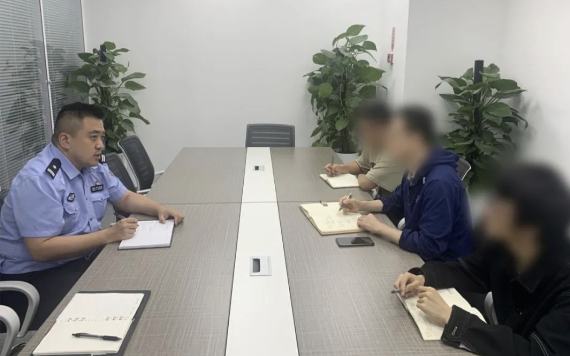 民警依法对某科技网络公司负责人进行约谈。 图源:北京市公安局朝阳分局