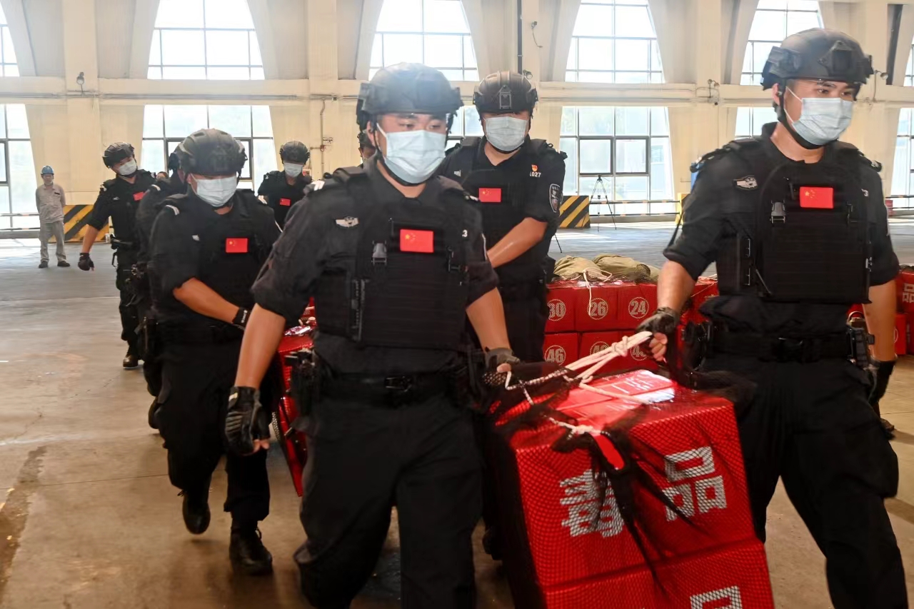 新京报记者了解到,此次行动在海南省人民检察院与海南省生态环境保护厅的严格监督下进行,确保销毁过程安全无害,符合环境保护标准。海南省公安厅海岸警察总队第一支队的特警队员们荷枪实弹,严密警戒,确保销毁现场的秩序与安全。