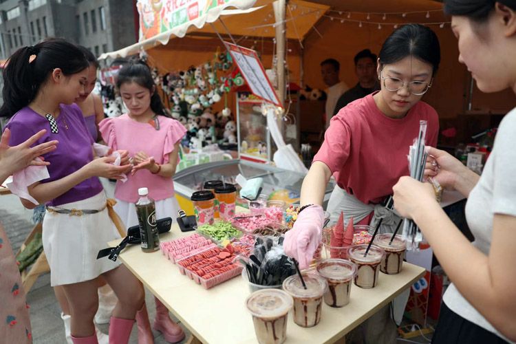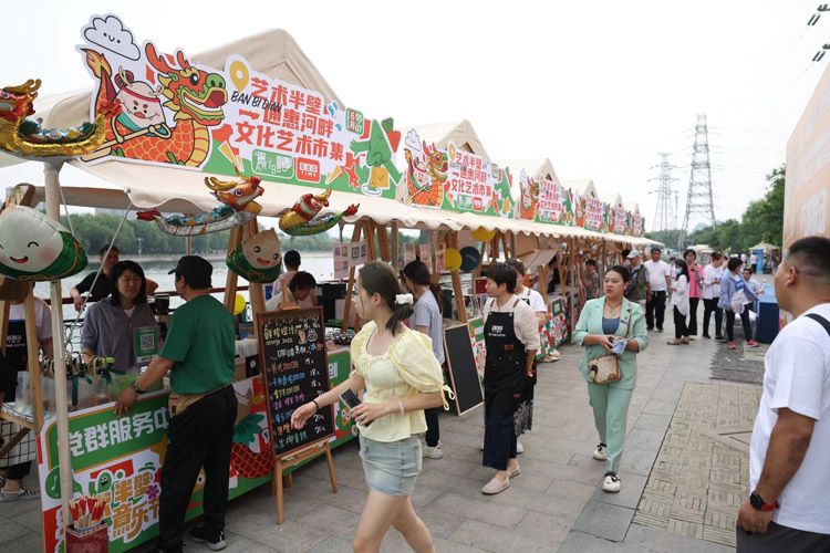 除了看比赛,市民还能参加“艺术半壁-通惠河畔第四届大运河文化节”。文化节上,来自北京朝阳区、浙江杭州市、山东聊城市、山东济宁市、天津西青区、江苏扬州市的特色文创商品亮相市集,文化节还推出了包粽子、制作香包、非遗空竹体验、制作艾草锤等传统手工艺活动。