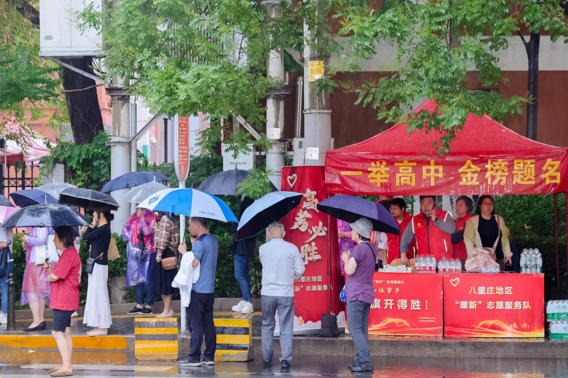与此同时,整座城市为考生和家长们保驾护航:考点附近的警务人员全天值守、疏解交通,过往行车小心鸣笛、不惊扰考生。一些社会组织也积极搭建伞棚、腾出空间,供送考家长歇息。