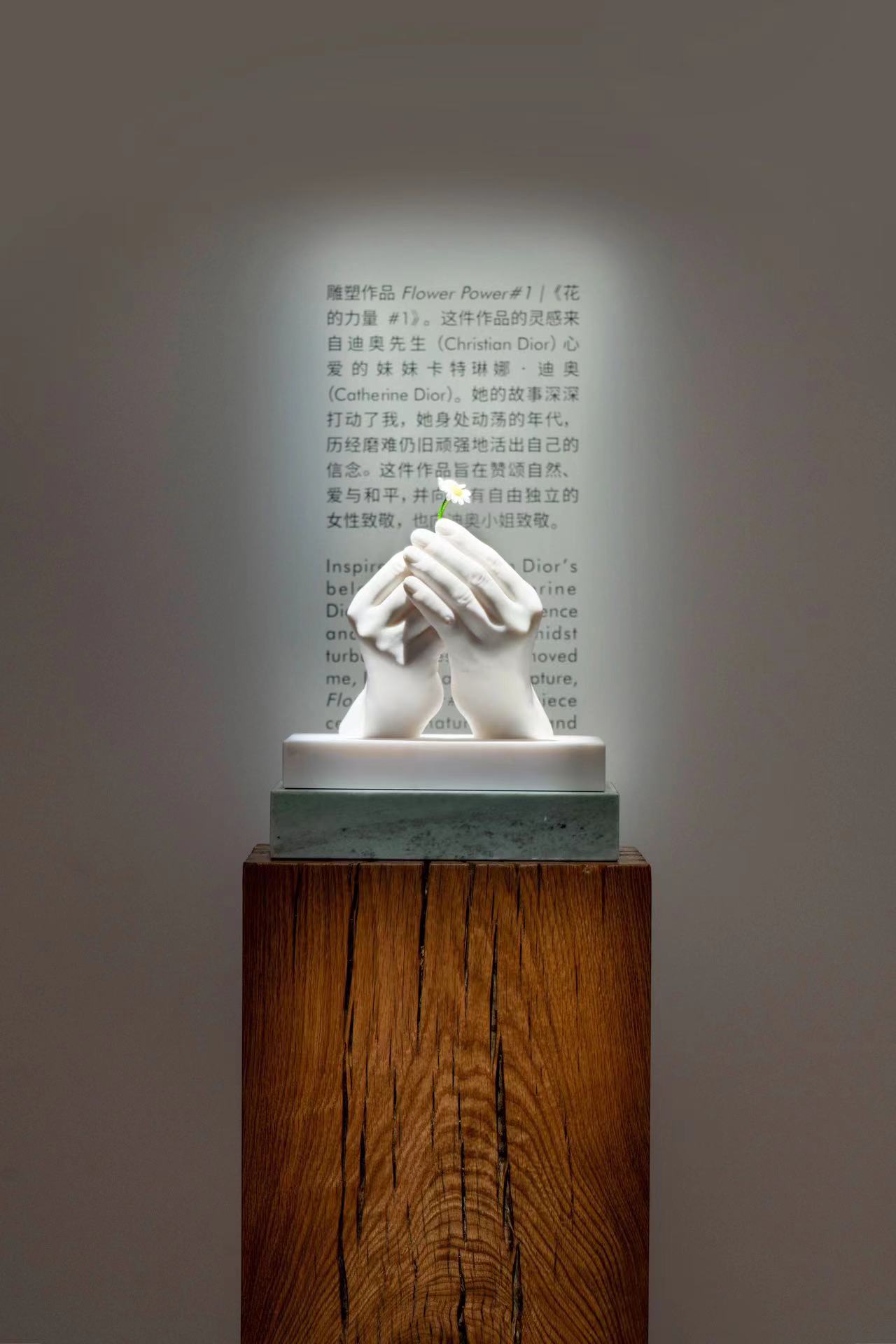 展览的亮点之一是艾敬为迪奥创作的全新雕塑作品Flower Power #1/《花的力量#1》。该作品灵感源自迪奥先生(Christian Dior)心爱的妹妹卡特琳娜·迪奥(Catherine Dior)。她的故事深深打动了艾敬,这位在动荡年代中历经磨难却依然坚守信念的女性,成为了艾敬艺术创作的灵感源泉。作品旨在赞颂自然、爱与和平,并向所有自由独立的女性致敬。