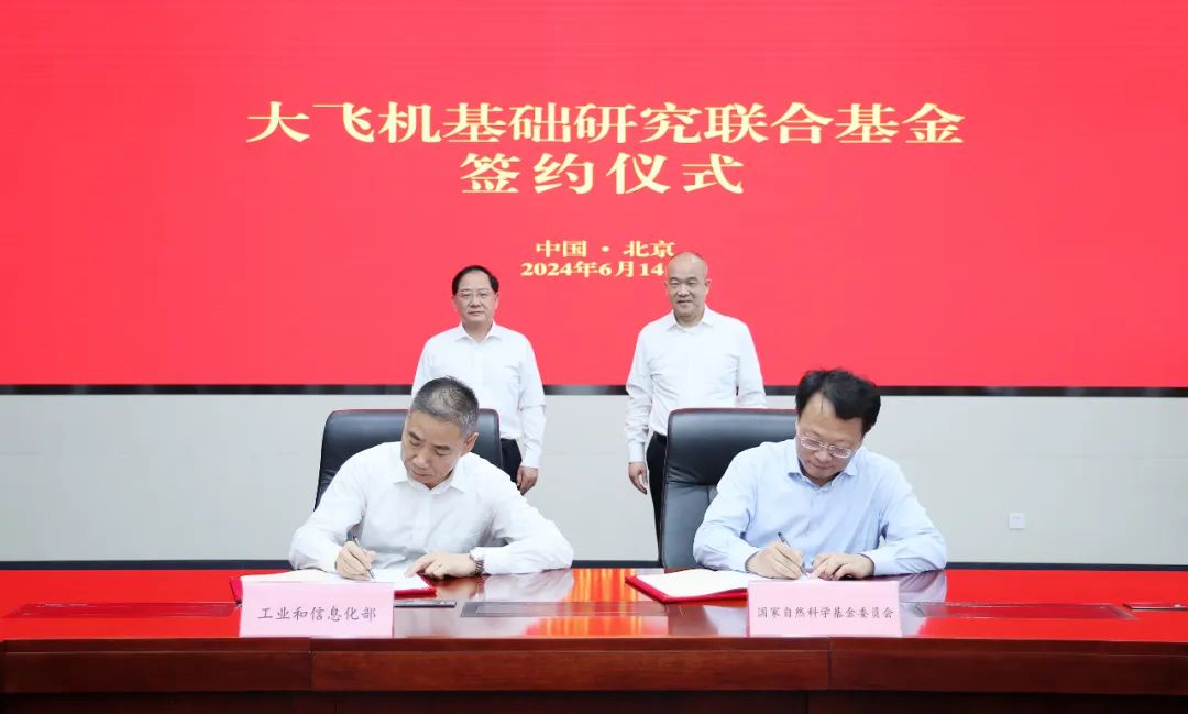 新京报讯 据“大飞机”微信公众号消息,6月14日,工业和信息化部、国家自然科学基金委员会签署合作协议,共同设立大飞机基础研究联合基金。工业和信息化部党组书记、部长金壮龙,国家自然科学基金委员会党组书记、主任窦贤康,工业和信息化部党组成员、副部长辛国斌,国家自然科学基金委员会党组成员、副主任王希勤出席活动。