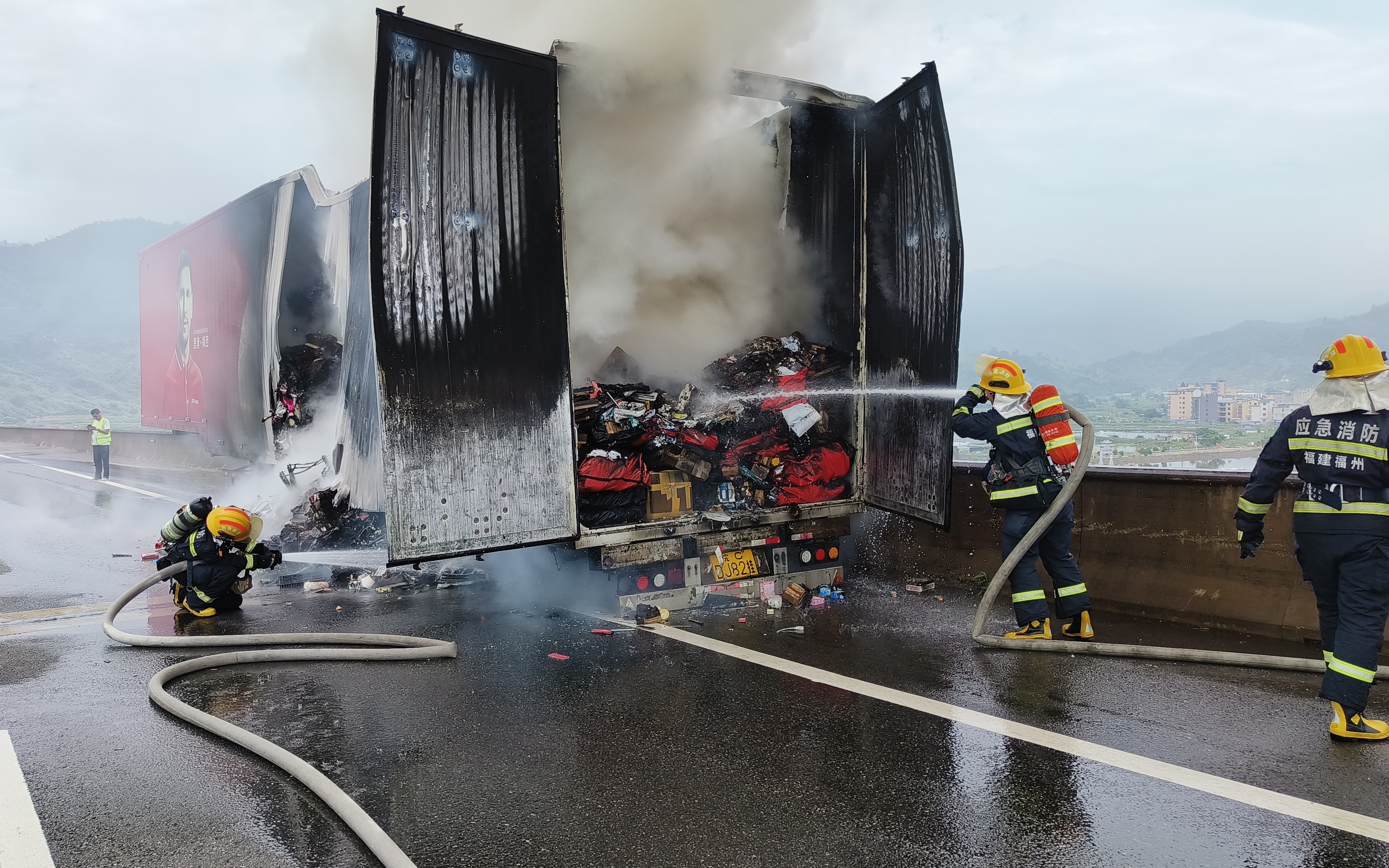 快递运输车高速上起火:大部分包裹被烧毁,所幸无人员伤亡