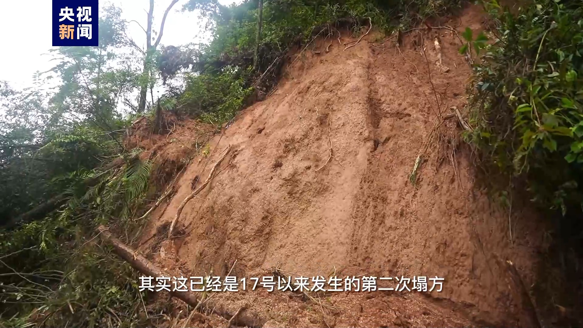 总台记者 廖汨:在距离上一处塌方大概150米的位置,我们又发现了另外一处塌方。