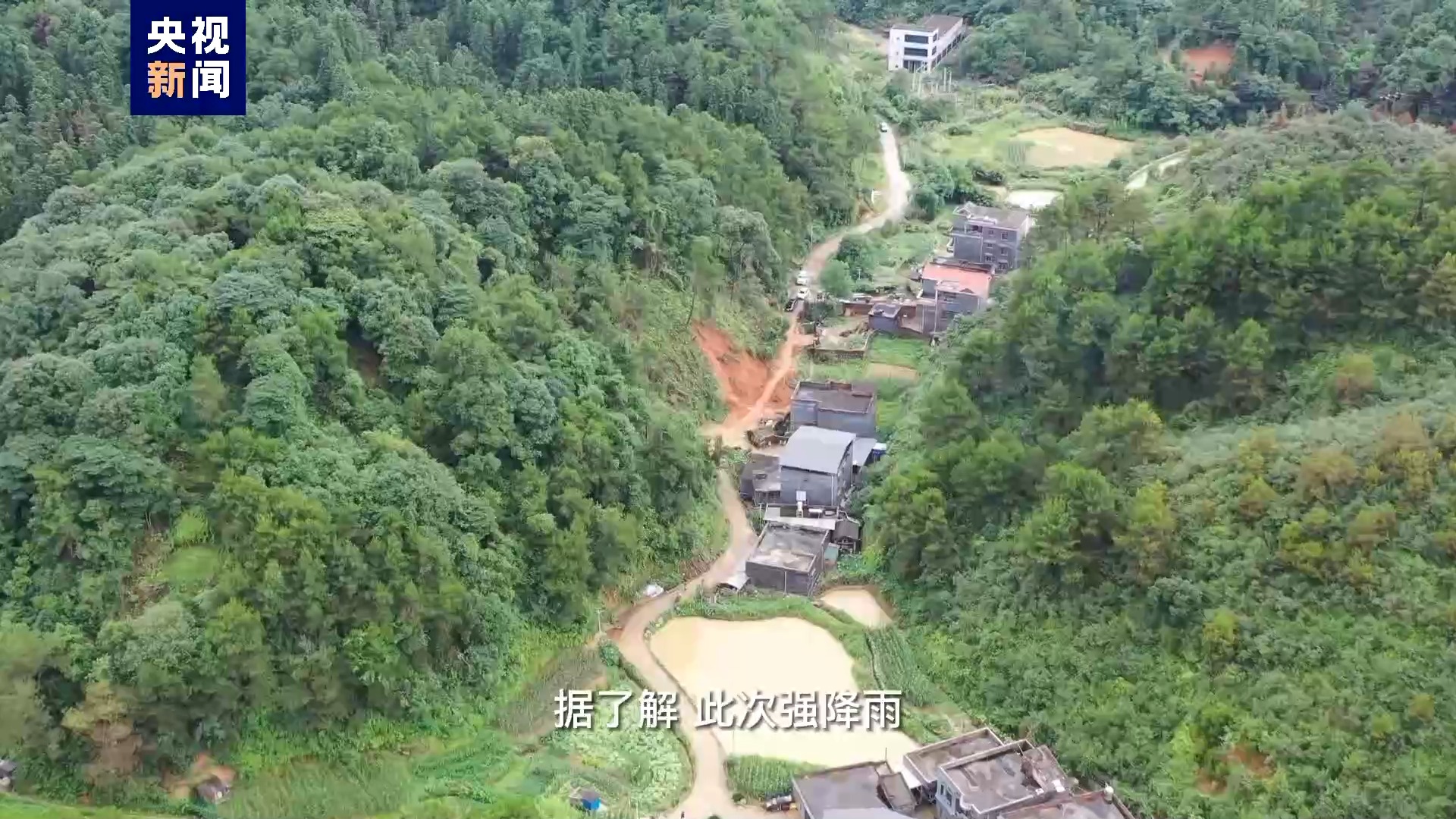 总台记者 廖汨:我现在是在钟山县花山瑶族乡的桥头村,我现在所走的这条道是乡里通往桥头村的唯一的一条村道,受连日来降雨的影响,这条村道的上方已经出现了一个大面积的塌方,大量的泥石裹挟着树木从山上冲泻下来,覆盖到了道路上面。
