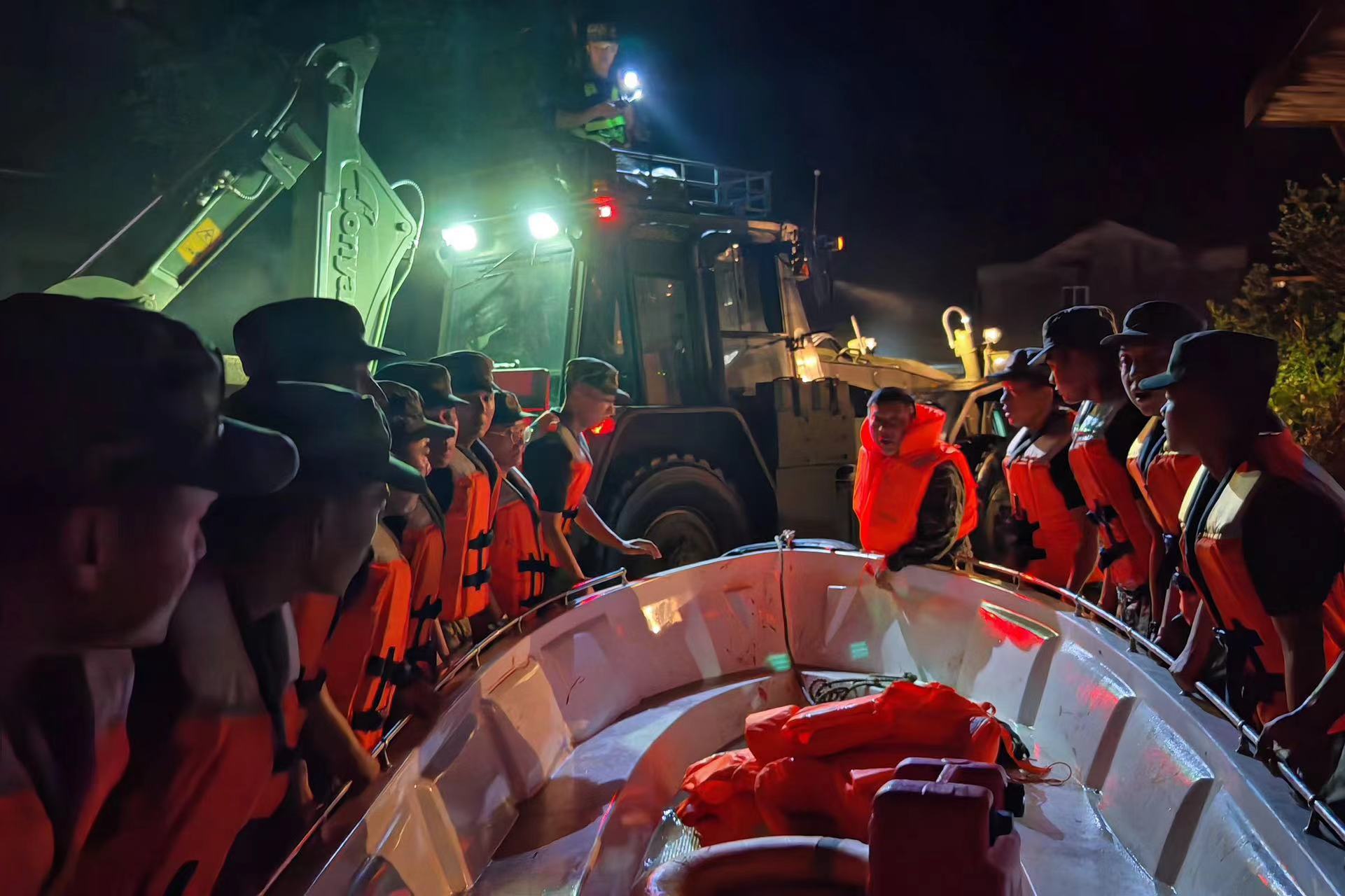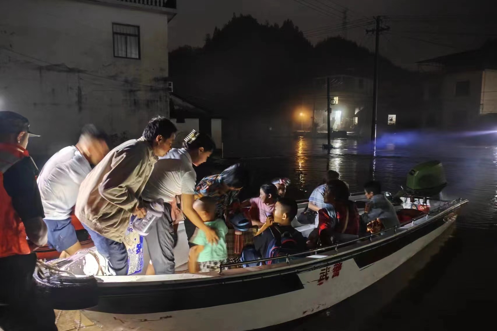 武警官兵抵达后搬运舟艇。截至6月20日23时,成功完成黄山市歙县横关村42名被困群众转移任务,有效保证了灾区周边人民群众生命和财产安全。