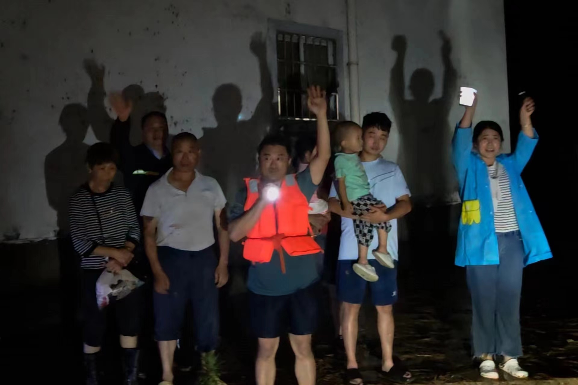 被救群众挥手示意感谢。