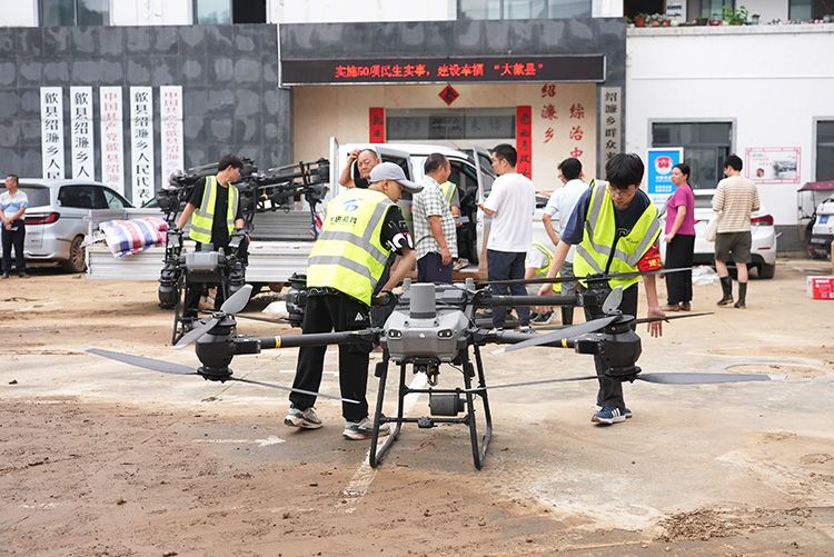 6月21日傍晚,大型无人机投入救灾现场,准备对小溪村进行空投补给。