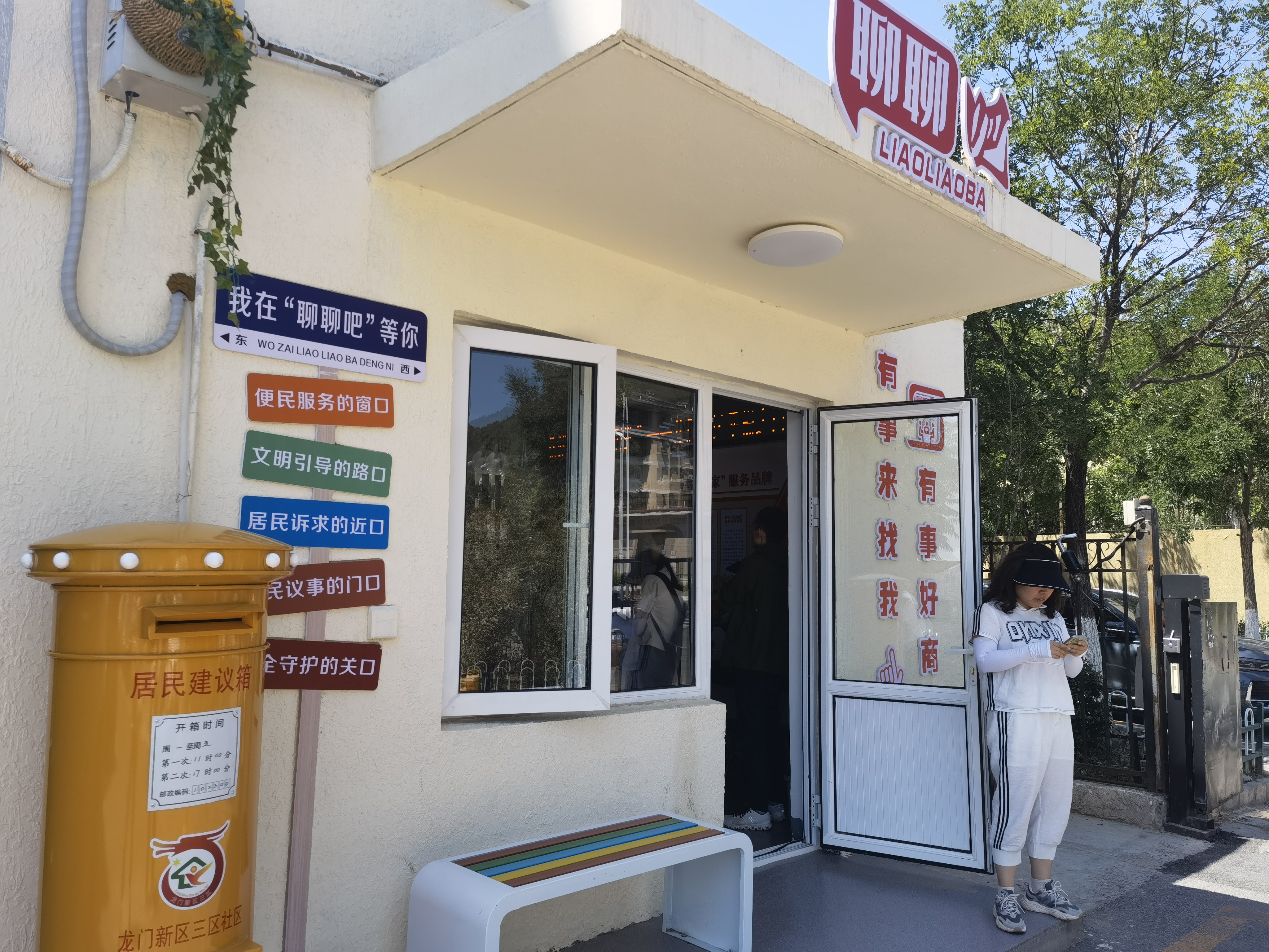 “聊聊吧”就是社区居委会为这间小房子起的名字,是龙门新区三区的创举,这间小房子有许多功能,最主要的功能是接待来访的居民,解决居民生活中的各种问题、听取各自的诉求等。