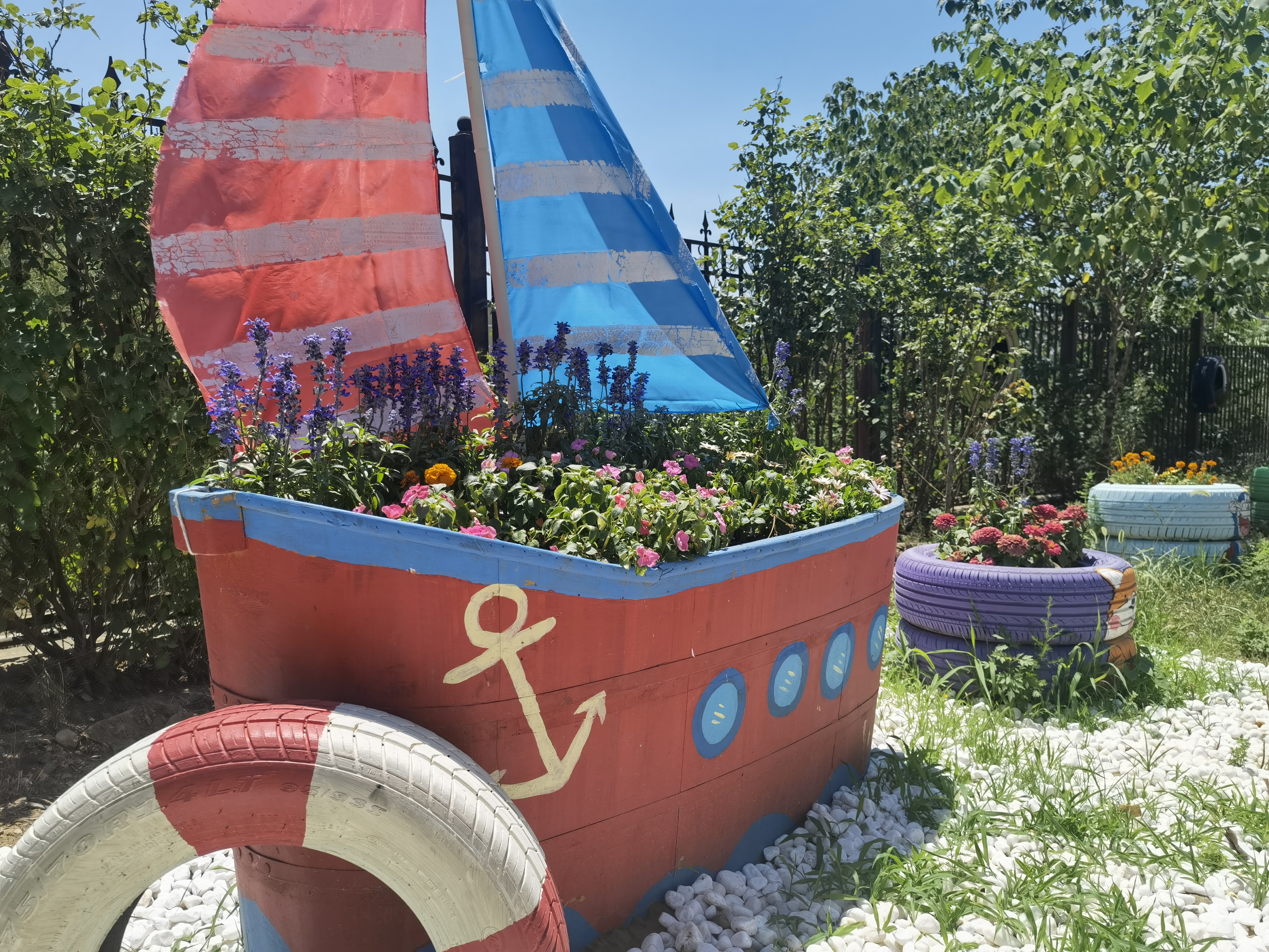 在这个社区中,孩子们还做了许许多多的事情,比如装点花园。社区居委会主任曹胜男介绍,小区中原本有一片杂草丛生的小道,在一次社区活动中,孩子们和家长、社区工作者一起,清理了杂草,种上了各种花卉。为此,许多居民捐出自家不用的东西,改造成这个小小花园的装饰物。有人捐出一个大木盆,孩子们在上面绘画,改造成了一艘小船,在船中填土,种上鲜花。