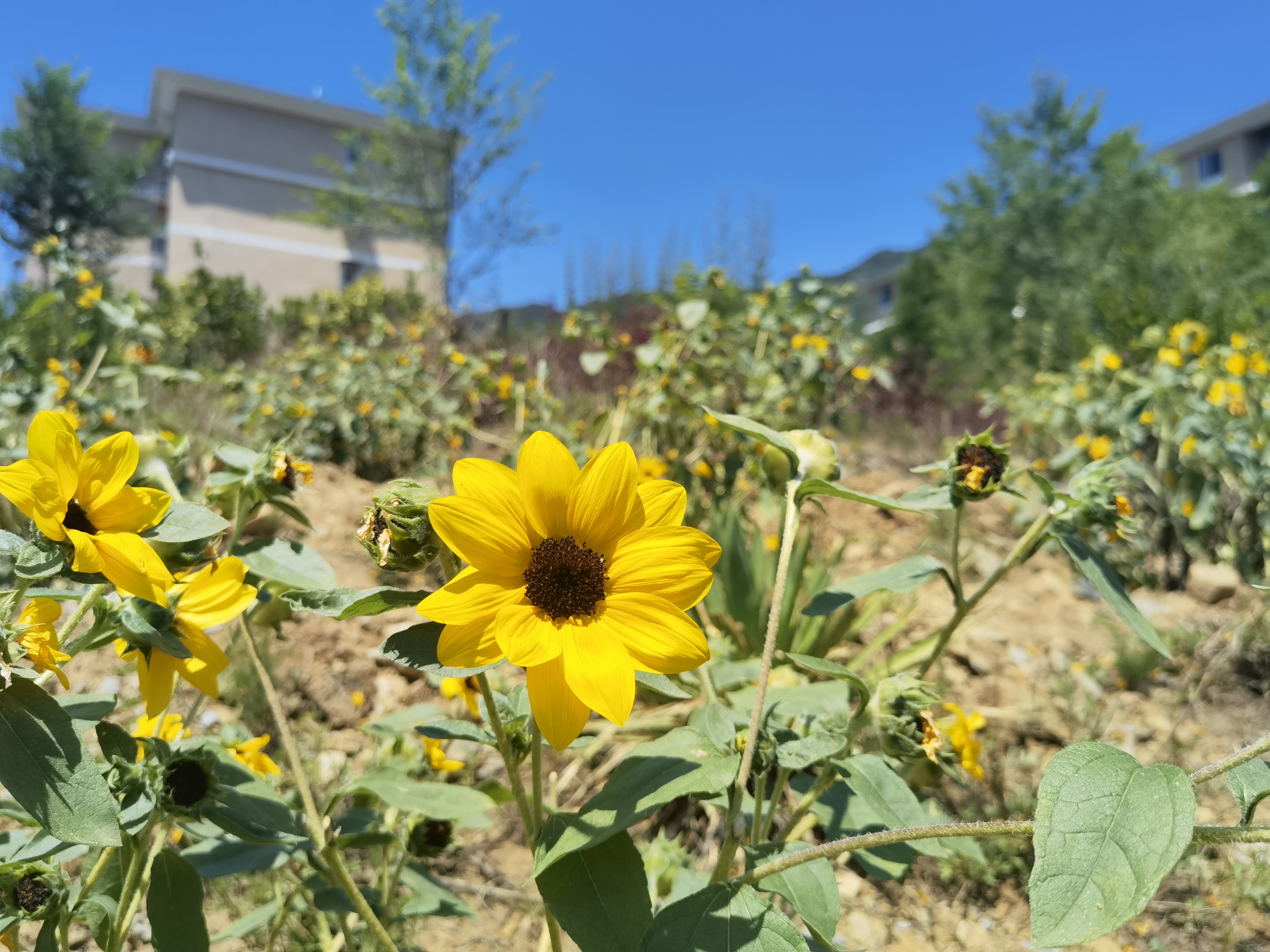 “向日葵耐旱,开花的时候也好看,所以我们种了很多观赏性向日葵。”曹胜男说,“一方面美化社区,一方面加固水土,现在下雨时不会再泥水横流了。”