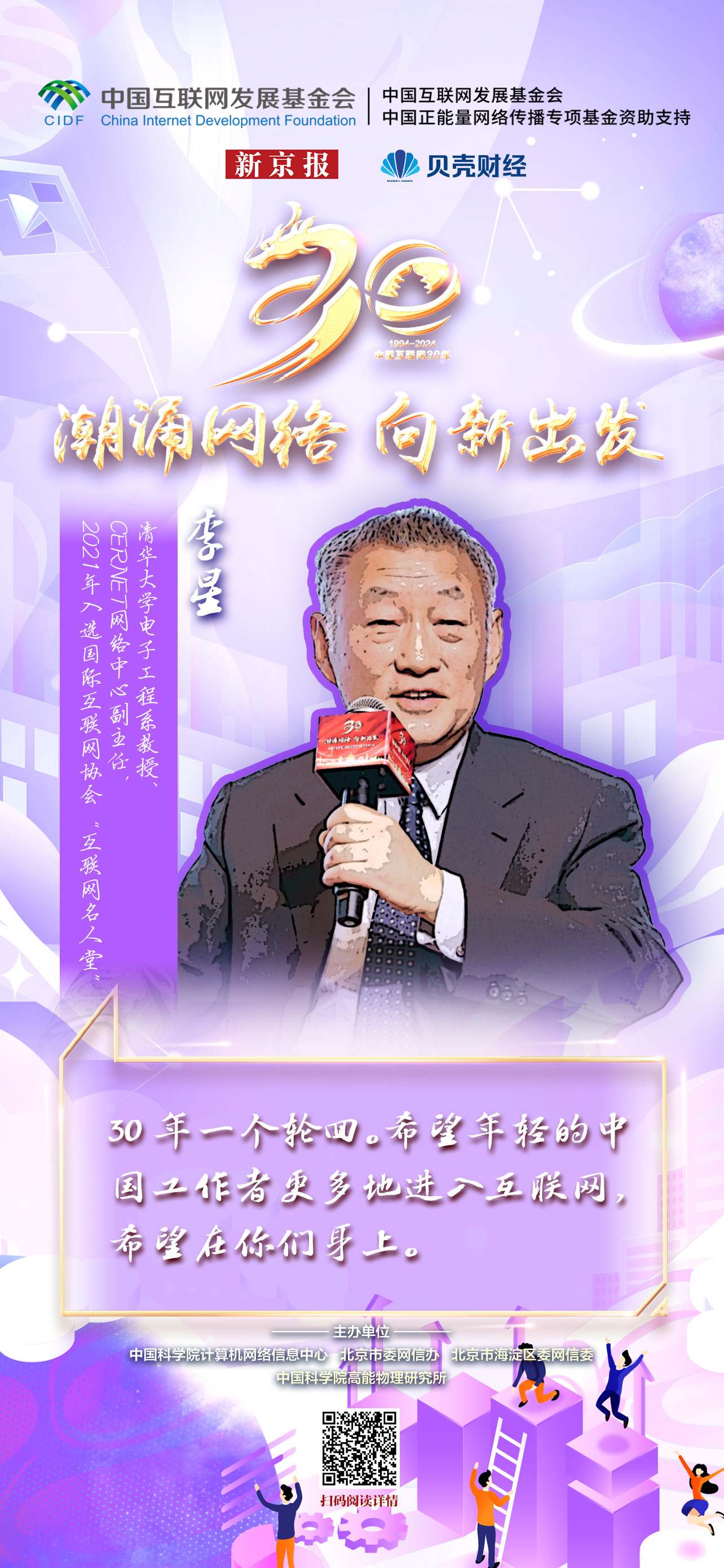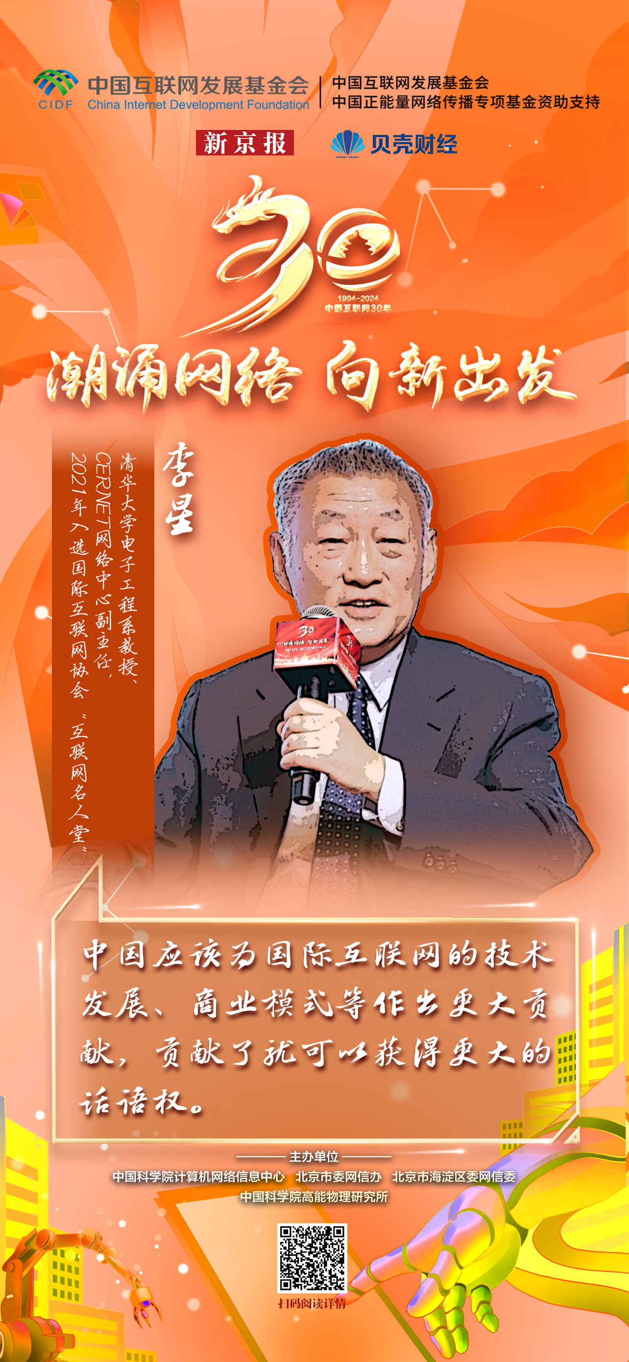 新京报贝壳财经讯(记者 白金蕾)2024年是我国全功能接入国际互联网30周年。近期,以“潮涌网络 向新出发”为主题的中国全功能接入国际互联网30周年高端对话活动在中国互联网诞生地——中国科学院计算机网络信息中心举办,清华大学电子工程系教授、CERNET网络中心副主任李星出席,李星于2021年入选国际互联网协会“互联网名人堂”。